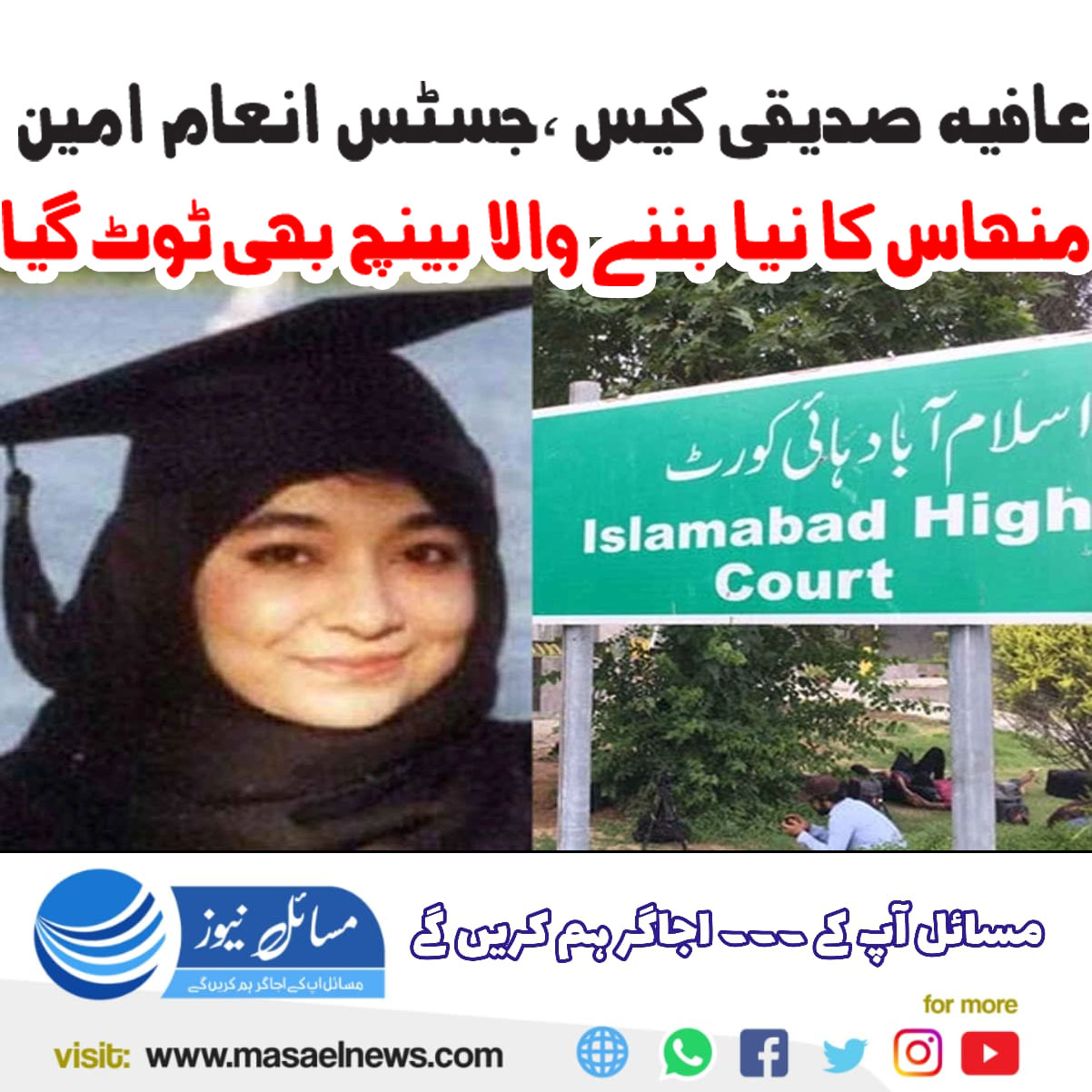 اسلام آباد(مسائل نیوز)ڈاکٹر عافیہ صدیقی کی صحت اور وطن واپسی کی سماعت کے لیے بنایا گیا نیا بینچ بھی ٹوٹ گیا۔