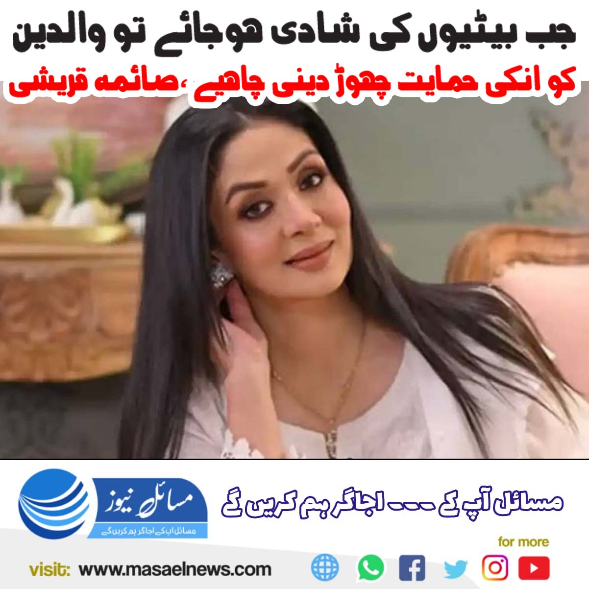 جب بیٹیوں کی شادی ہو جائے تو والدین کو انکی حمایت چھوڑ دینی چاہیے: صائمہ قریشی