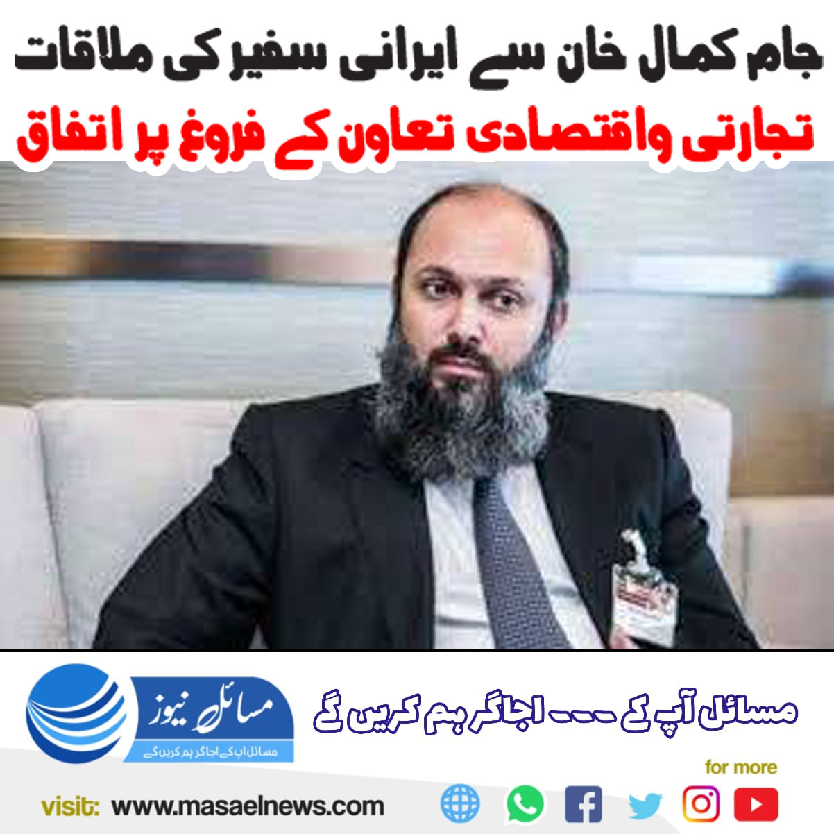 جام کمال خان سے ایرانی سفیر کی ملاقات ، تجارتی و اقتصادی تعاون کے فروغ پر اتفاق