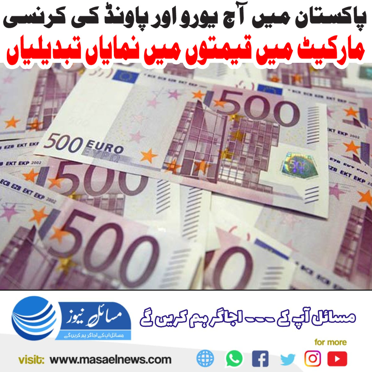 پاکستان میں آج یورو اور پاؤنڈ کی کرنسی مارکیٹ میں قیمتوں میں نمایاں تبدیلیاں