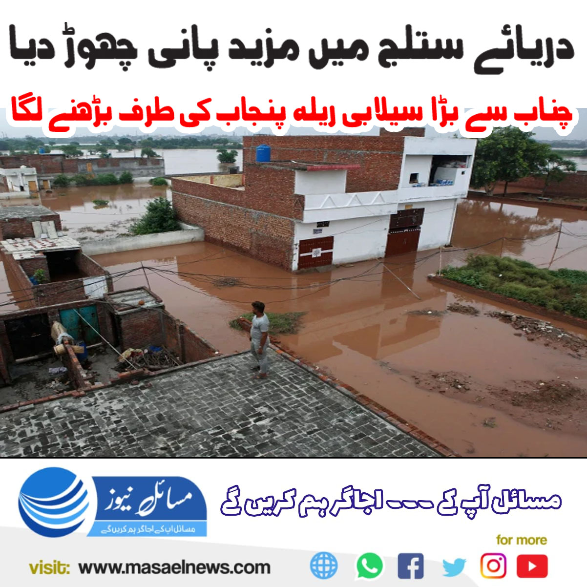 بھارت نے دریائے ستلج میں مزید پانی چھوڑ دیا، چناب سے بڑا سیلابی ریلا جنوبی پنجاب کی طرف بڑھنے لگا