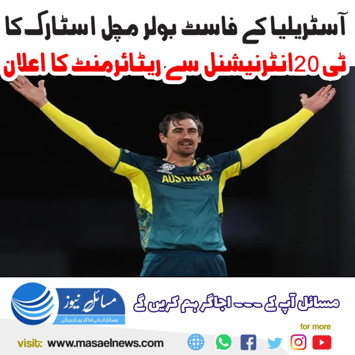 آسٹریلیا (مسائل نیوز)آسٹریلیا کے تجربہ کار فاسٹ بولر مچل اسٹارک نے ٹی ٹوئنٹی انٹرنیشنل کرکٹ کو خیرباد کہہ دیا۔