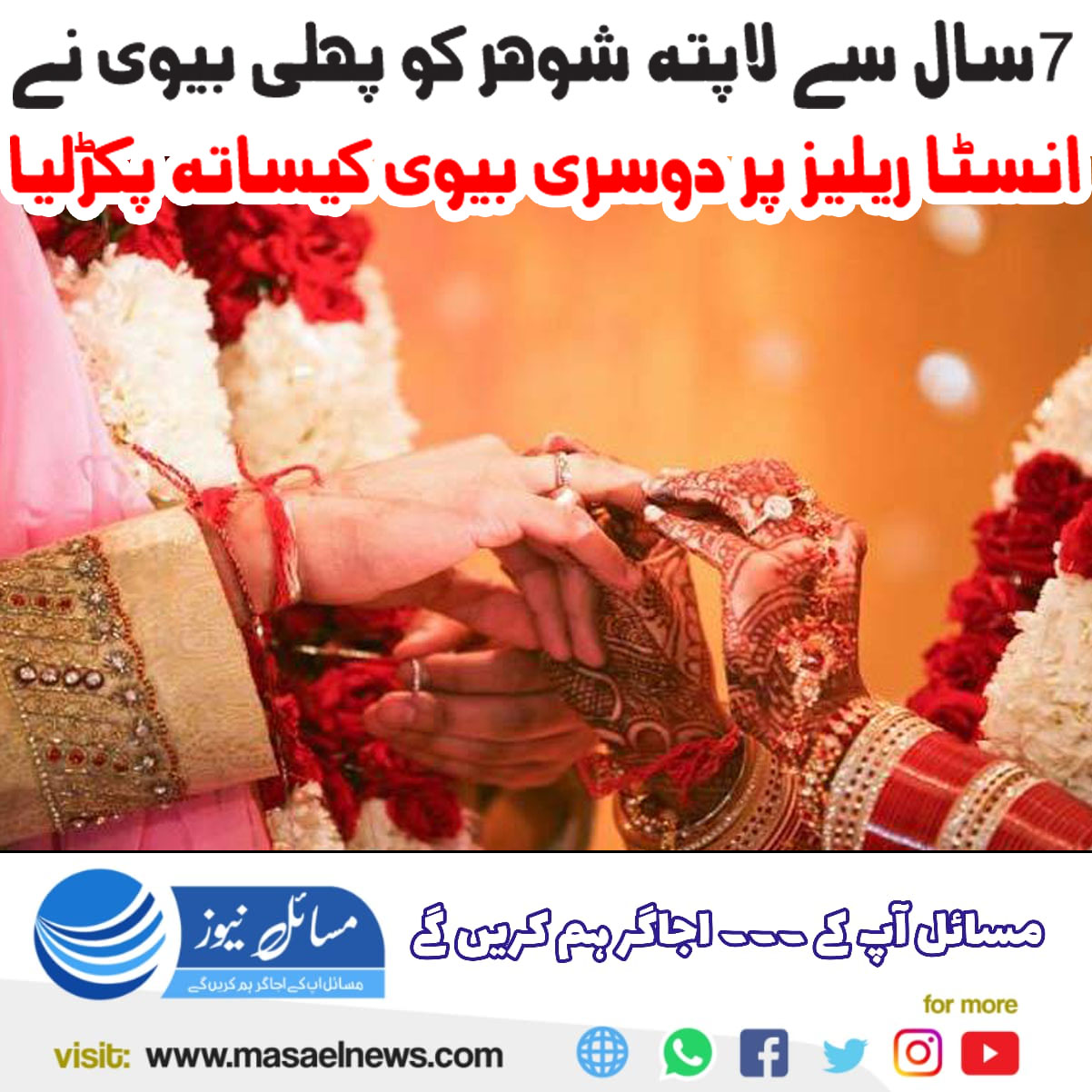 7 سال سے لاپتا شوہر کو پہلی بیوی نے انسٹا ریلز پر دوسری بیوی کے ساتھ پکڑ لیا