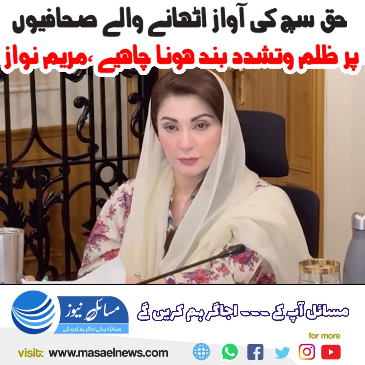 حق سچ کی آواز اٹھانے والے صحافیوں پر ظلم و تشدد بند ہونا چاہیے: مریم نواز
