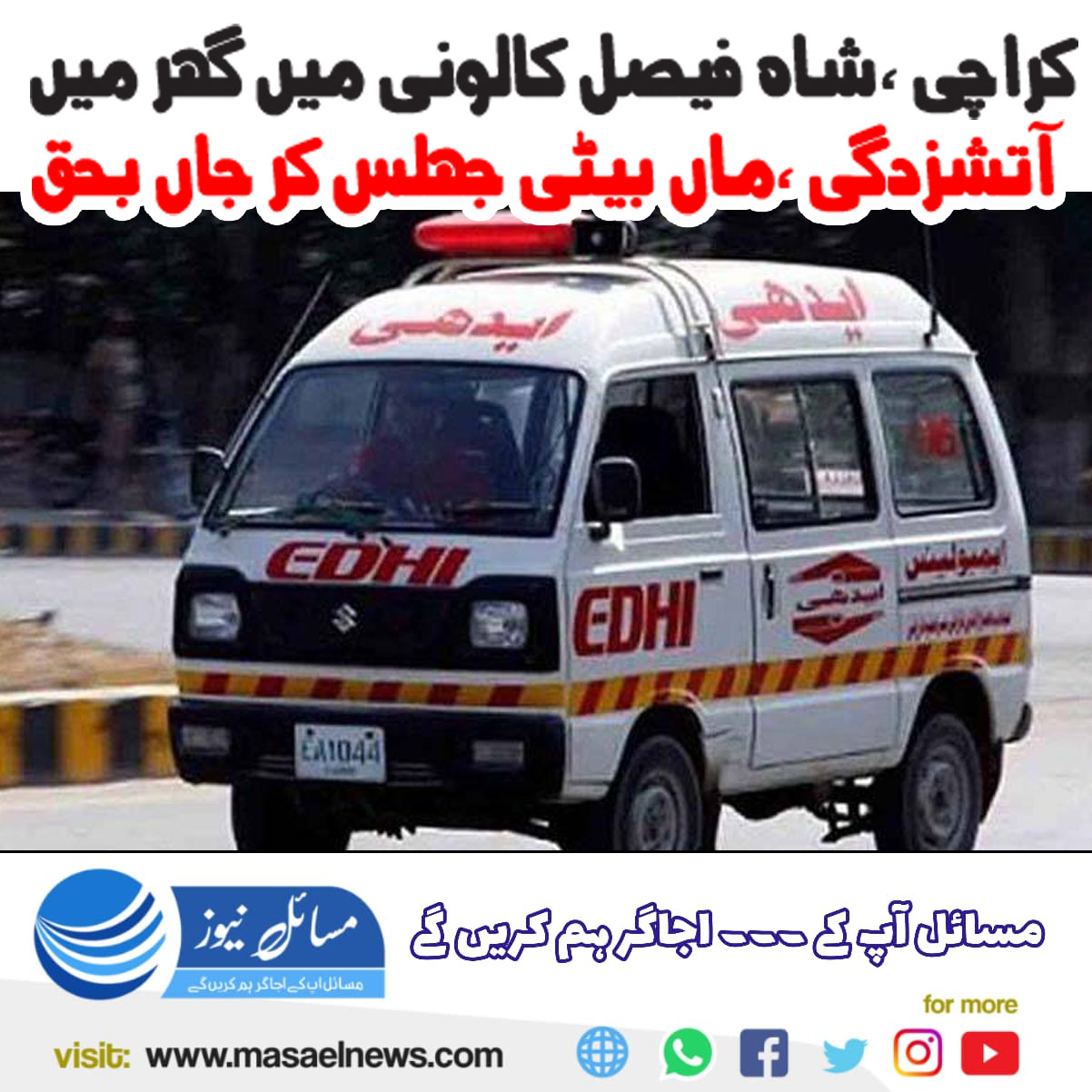 نجی ٹی وی چینل دنیا نیوز کے مطابق پولیس کا کہنا ہے کہ شہر قائد کے علاقے شاہ فیصل کالونی میں گھر میں شارٹ سرکٹ کے باعث آگ لگی جس کے نتیجے میں ماں بیٹی جاں بحق ہوگئیں، جھلس کر جاں بحق ہونے والوں کی شناخت 50 سالہ کلیم النساء اور 25 سالہ عتیقہ کے نام سے ہوئی۔