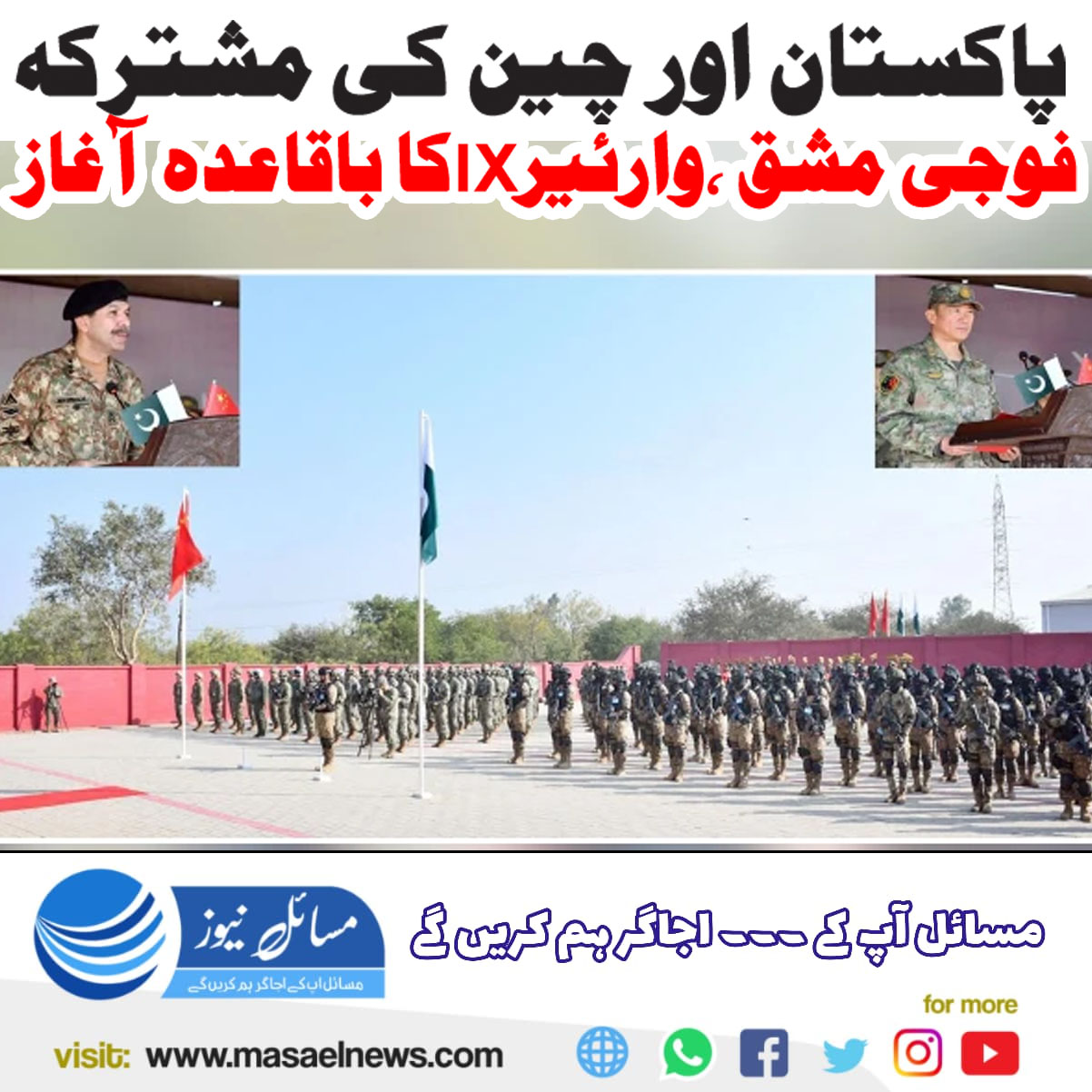 ترجمان پاک فوج کے مطابق پاکستان اور چین کے درمیان دفاعی تعاون باہمی اعتماد پر مبنی دہائیوں پر محیط اسٹریٹجک شراکت داری کا حصہ ہے۔ مشترکہ مشق وارئیر-IX دونوں ممالک کے مضبوط ملٹری ٹو ملٹری تعلقات اور خطے میں امن و استحکام کے مشترکہ عزم کی واضح مثال ہے۔