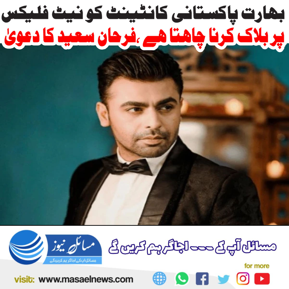 بھارت پاکستانی کانٹینٹ کو نیٹ فلکس پر بلاک کرنا چاہتا ہے، فرحان سعید کا دعویٰ