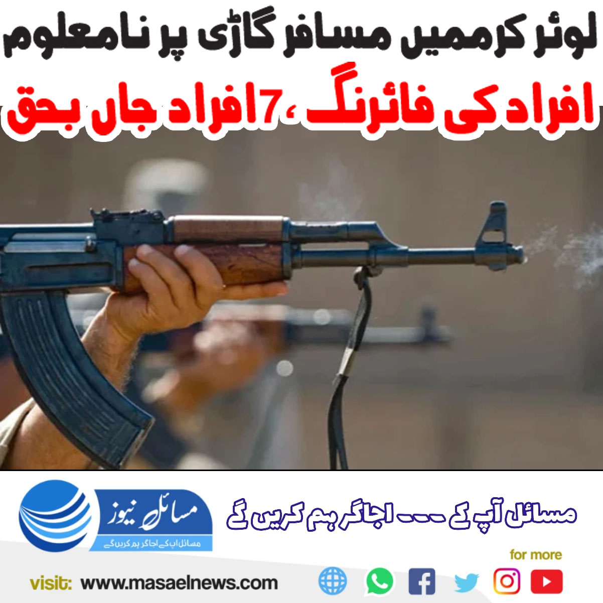 ڈی آئی خان(مسائل نیوز)ڈیرہ اسماعیل خان کی تحصیل لوئر کرم میں مسافر گاڑی پر نامعلوم افراد کے حملے میں 7 افراد جاں بحق ہو گئے۔