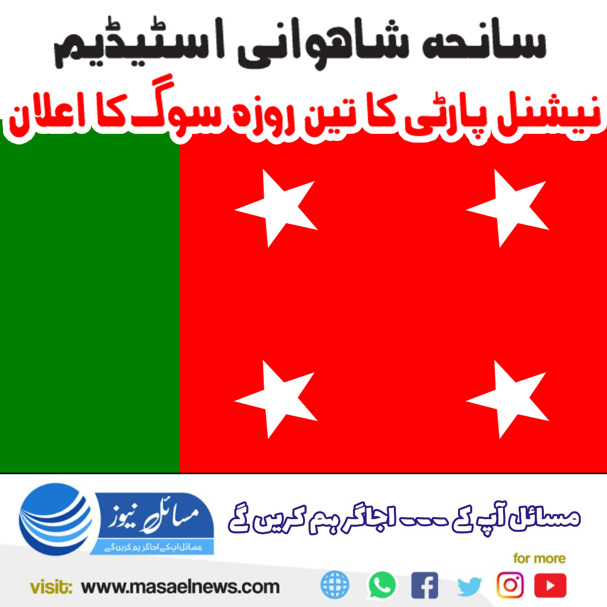 سانحہ شاہوانی اسٹیڈیم، نیشنل پارٹی کا تین روزہ سوگ کا اعلان
