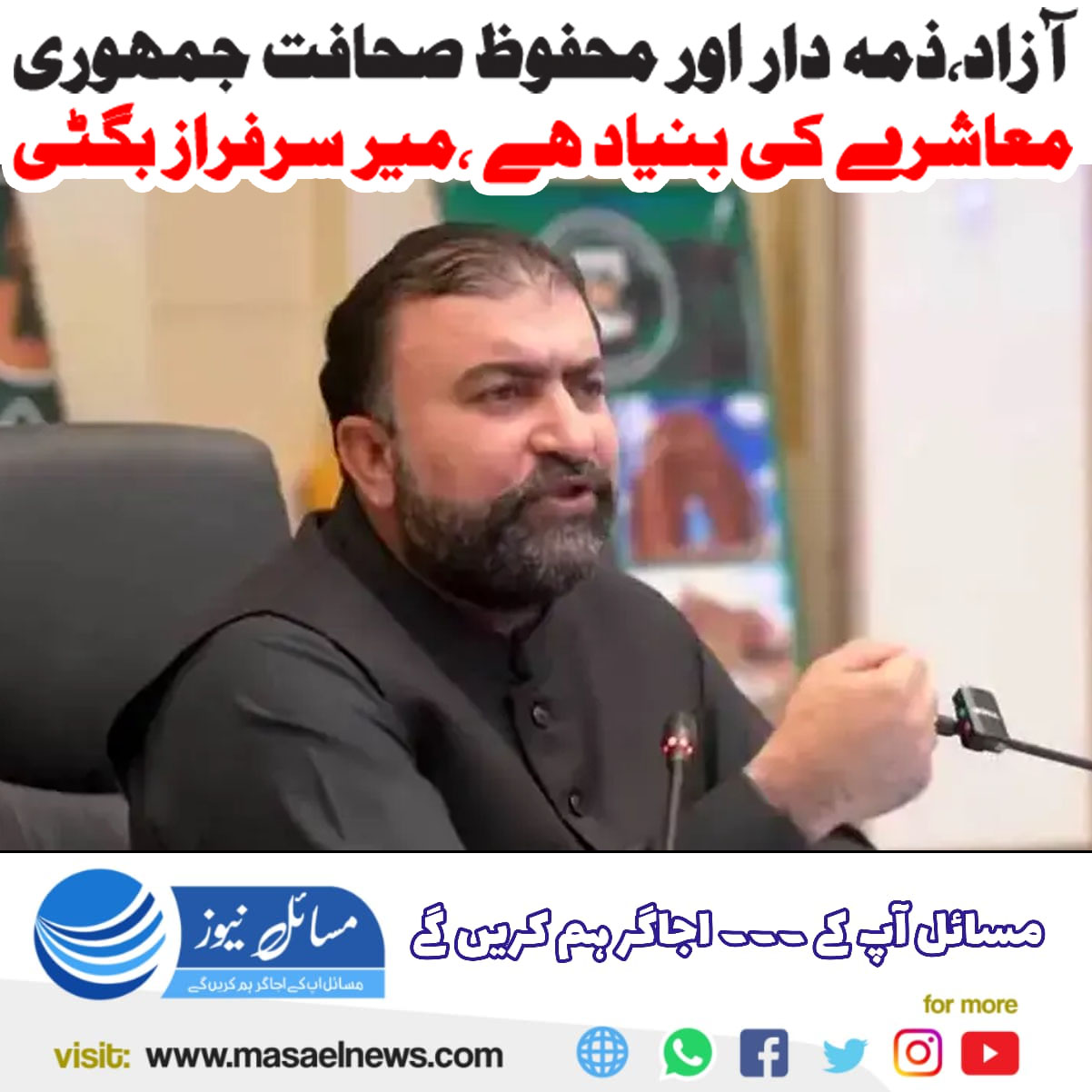 آزاد، ذمہ دار اور محفوظ صحافت جمہوری معاشرے کی بنیاد ہے وزیر اعلیٰ بلوچستان میر سرفراز بگٹی