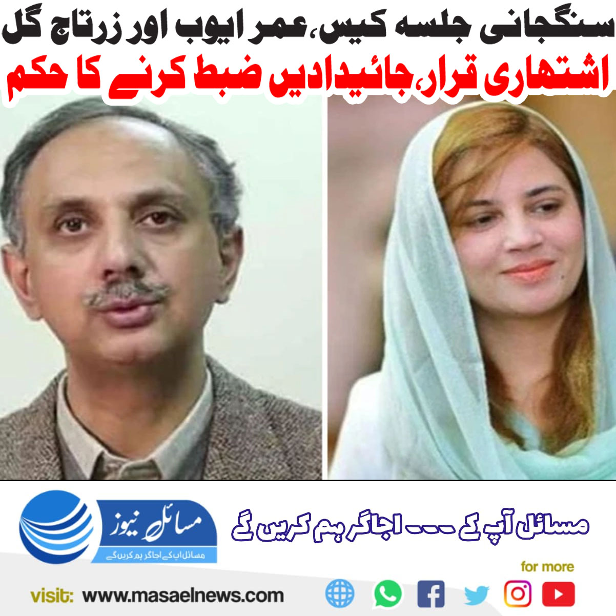 اسلام آباد(مسائل نیوز)انسداد دہشت گردی عدالت نے سنگجانی جلسہ کیس میں پی ٹی آئی رہنماؤں عمر ایوب اور زرتاج گل کو اشتہاری قرار دے دیا۔