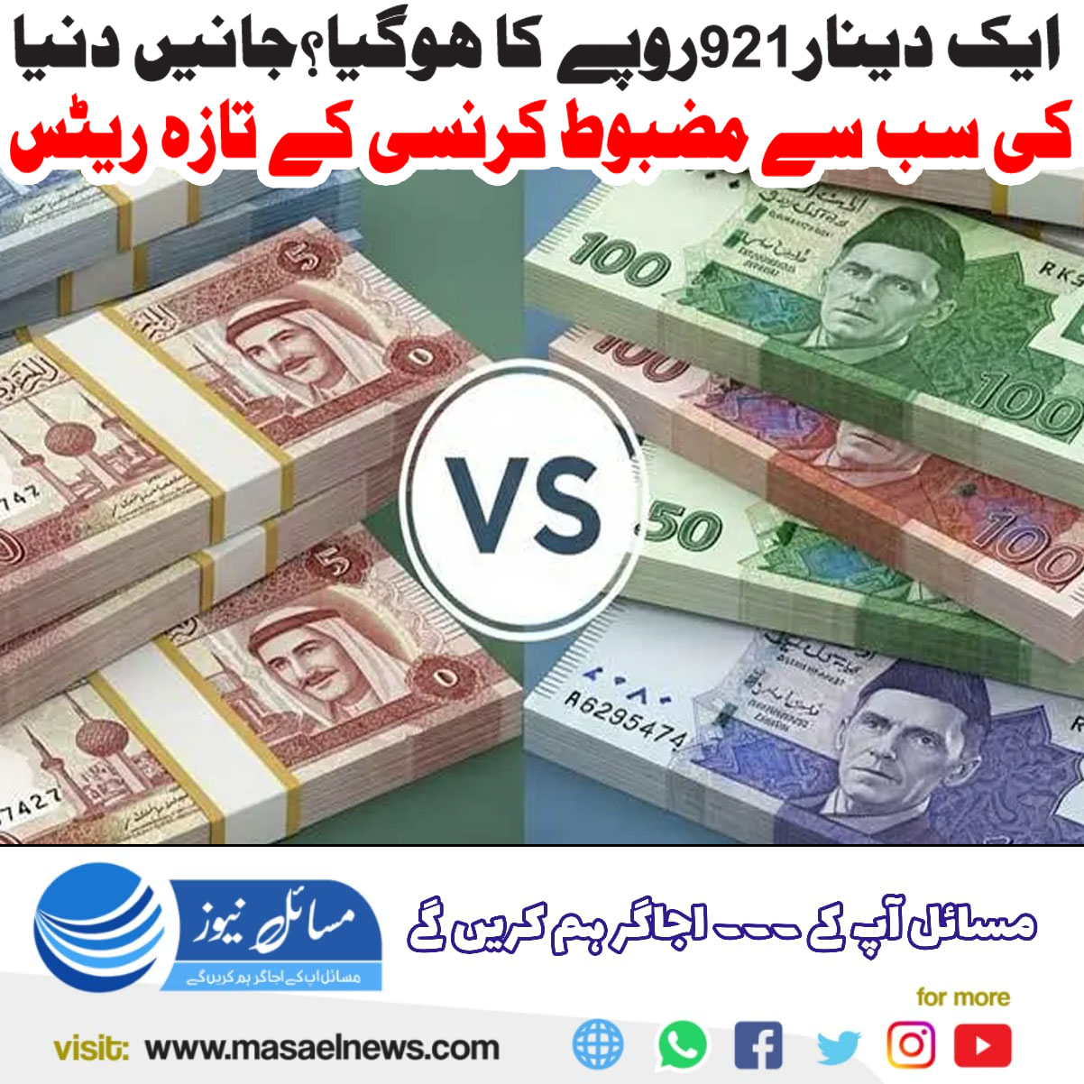 ایک دینار 921 روپے کا ہوگیا؟ جانیں دنیا کی سب سے مضبوط کرنسی کے تازہ ریٹس