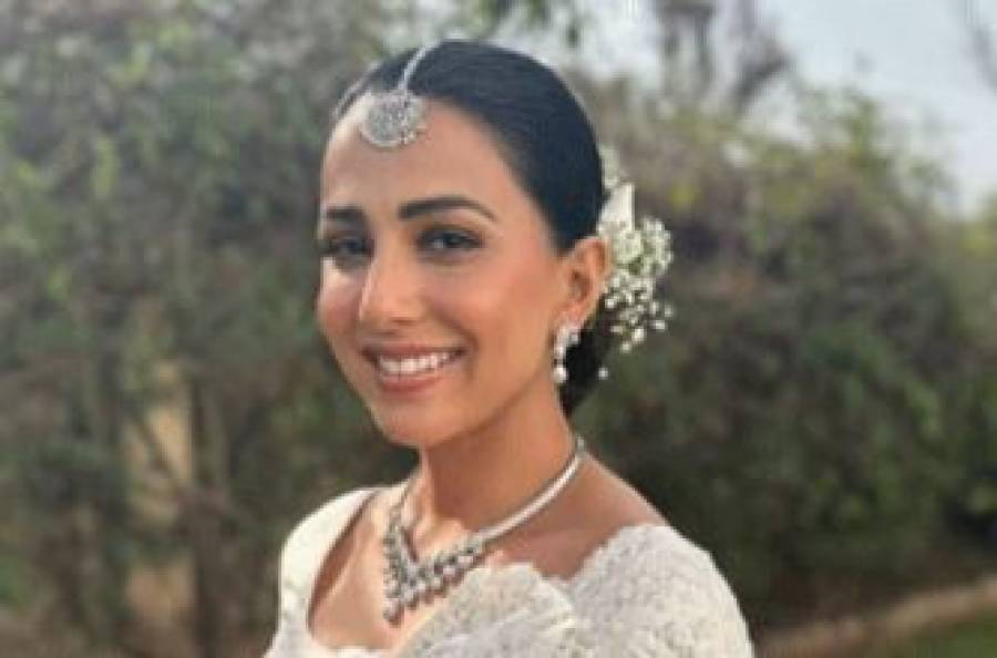 اشنا نے سفید رنگ کی ساڑھی اور زیور بھی پہن رکھا ہے اور خوبصور ت مسکراہٹ کے ساتھ تصویر کیلئے پوز دے رہی ہیں۔