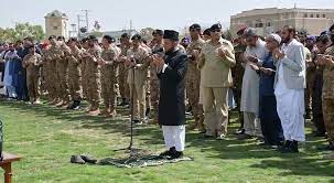 کی نمازِ جنازہ کے موقع پر غائب تھے۔روزنامہ جنگ میں صالح ظافرکی شائع خبر کے مطابق عمران خان اسلام آباد میں تھے اور انہوں نے ایک دن قبل ہی دعویٰ کیا تھا کہ شہید کور کمانڈر سرفراز علی خان ان کے دوست تھے لیکن پھر بھی وہ ان کی نمازِ جنازہ میں نہیں گئے۔ اس موقع پر وزیراعظم شہباز شریف، چیئرمین جوائنٹ چیفس آف اسٹاف کمیٹی لیفٹیننٹ جنرل ساحر شمشاد مرزا، کور کمانڈر پشاور لیفٹیننٹ جنرل فیض حمید، نئے مقرر ہونے والے کور کمانڈر کوئٹہ لیفٹیننٹ جنرل آصف غفور، دیگر فوجی کمانڈرز، وزیر دفاع خواجہ آصف، چیئرمین سینیٹ، وفاقی وزراء، وزیراعظم آزاد جموں و کشمیر، جے یو آئی آئی رہنما غفور حیدری، سینیٹر شبلی فراز، ریٹائرڈ فوجی اور سویلین افسران، شہداء کے رشتہ دار اور دیگر شخصیات ریس کورس گرائونڈ میں موجود تھیں۔ آرمی چیف جنرل قمر باجوہ نے شہداء کے اہل خانہ کو قومی پرچم پیش کیا۔ شہداء کو مکمل فوجی اعزاز کے ساتھ آرمی قبرستان میں سپرد خاک کیا گیا۔