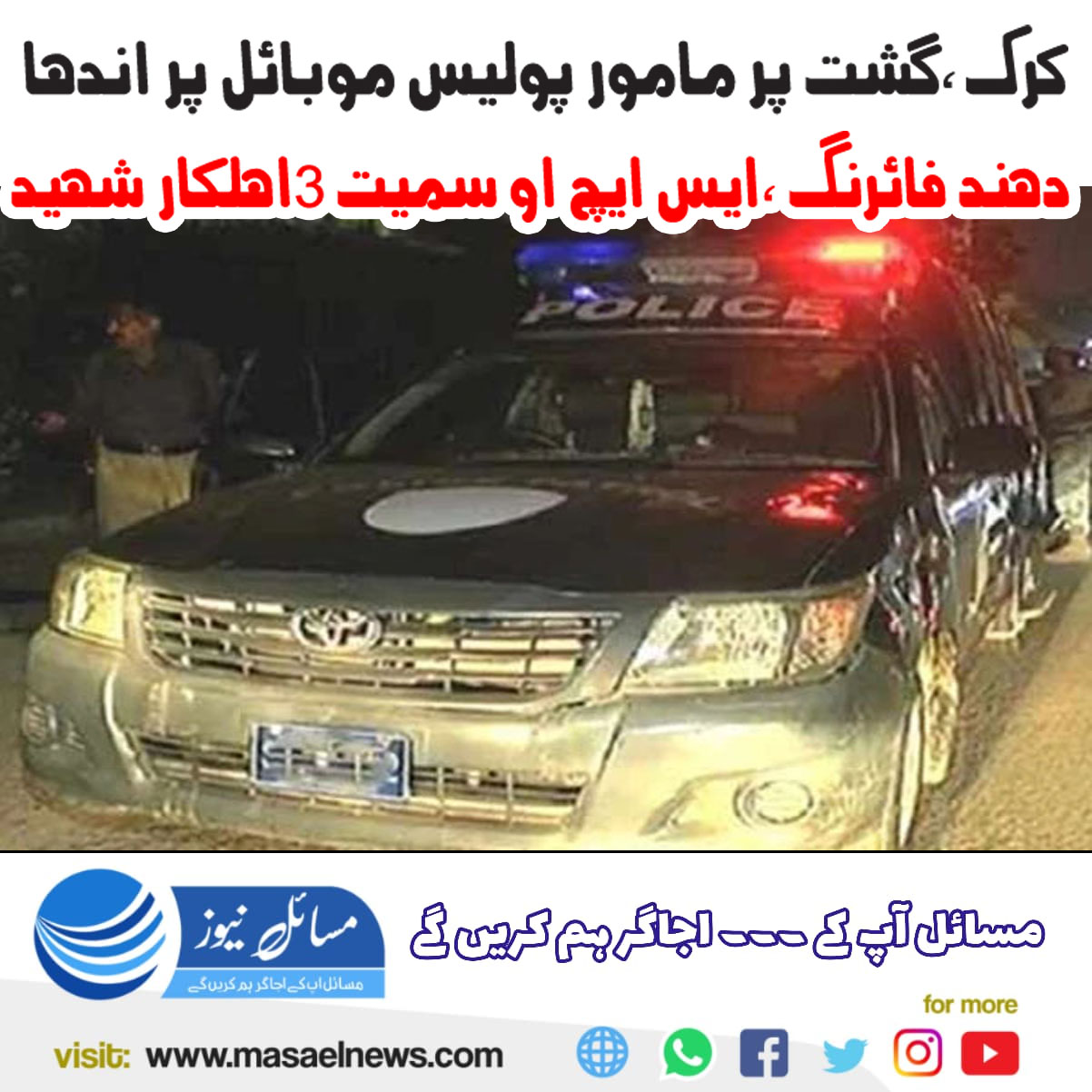ترجمان کرک پولیس کے مطابق یہ افسوسناک واقعہ اس وقت پیش آیا جب ایس ایچ او عمر نواز اپنے دو ساتھی اہلکاروں کے ہمراہ معمول کی گشت پر تھے۔