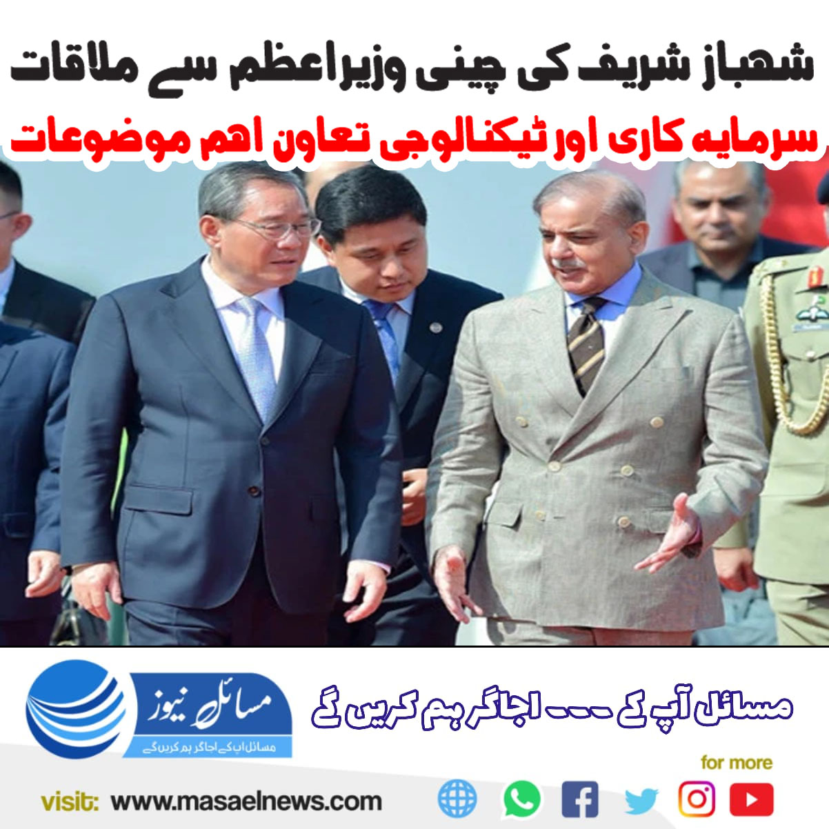 شہباز شریف کی چینی وزیراعظم سے ملاقات؛ سرمایہ کاری اور ٹیکنالوجی تعاون اہم موضوعات