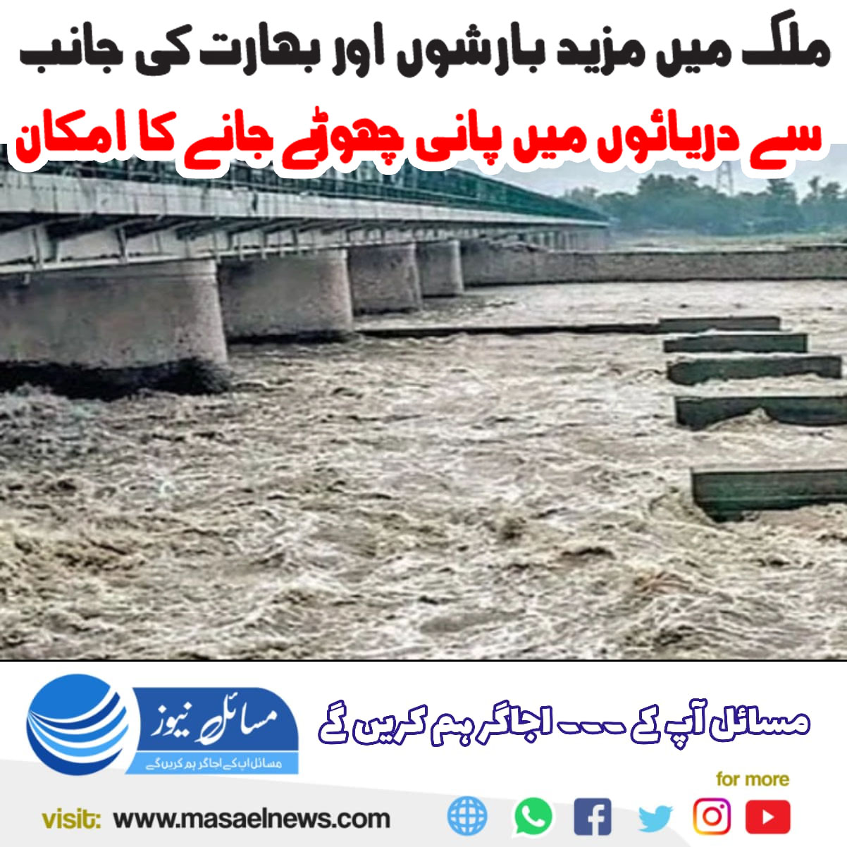 لاہور(مسائل نیوز)ملک میں مزید بارشوں اور بھارت کی جانب سے دریاؤں میں پانی چھوڑے جانے کا امکان ہے۔