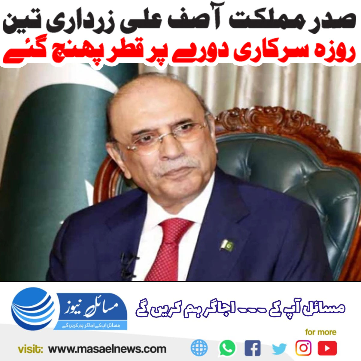 دوحا(مسائل نیوز)صدرِ مملکت آصف علی زرداری تین روزہ سرکاری دورے پر قطر پہنچ گئے۔ حماد انٹرنیشنل ایئرپورٹ پر سینئر قطری حکام اور پاکستان کے سفیر نے صدرِ مملکت کا پُرتپاک استقبال کیا اور انہیں گلدستہ پیش کیا گیا۔