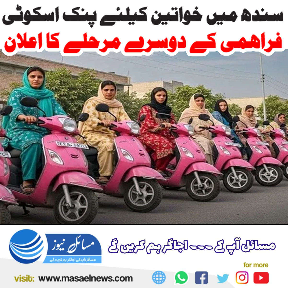 کراچی(مسائل نیوز)سندھ حکومت کی جانب سے خواتین کے لیے پنک اسکوٹی فراہمی کے دوسرے مرحلے کا اعلان کردیا گیا ہے۔