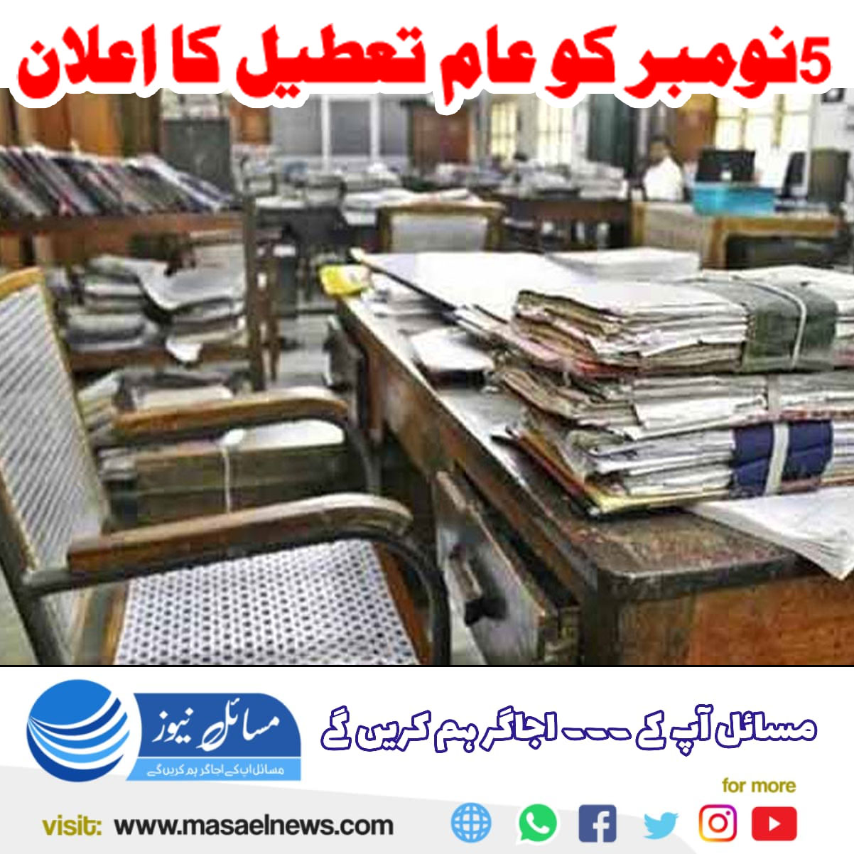 کل 5 نومبربروز بدھ کو ضلع کے تمام سرکاری ادارے، اسکول و کالجز بند رہیں گے۔