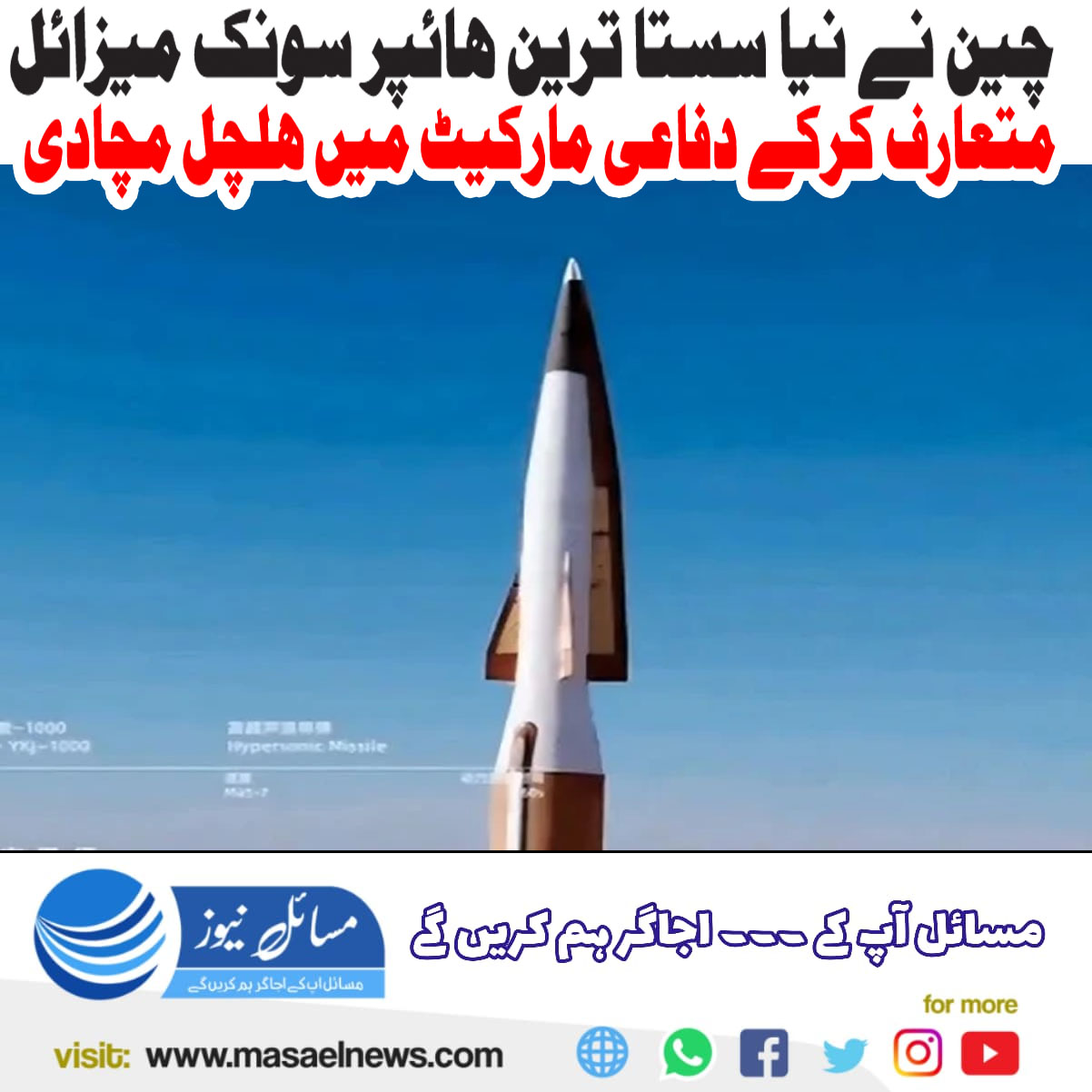 چین نے نیا سستا ترین ہائپرسونک میزائل متعارف کر کے دفاعی مارکیٹ میں ہلچل مچا دی