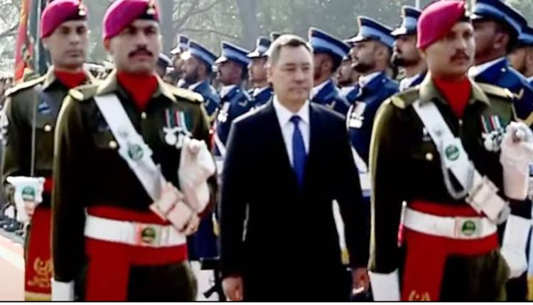 کرغزستان کے صدر کو مسلح افواج کے چاق چوبند دستے کی جانب سے گارڈ آف آنر پیش کیا گیا، معزز مہمان نے گارڈ آف آنر کا معائنہ کیا۔