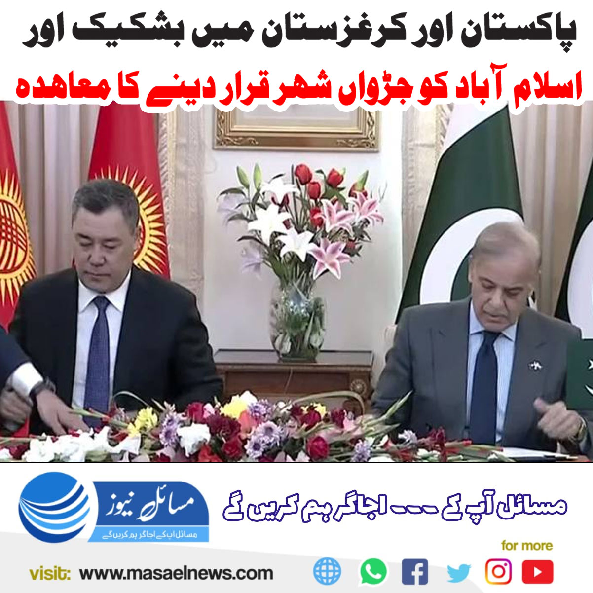 وزیر اعظم شہباز شریف اور کرغزستان کے صدر صادر ژپاروف کے درمیان بشکیک اور اسلام آباد کو جڑواں شہر قرار دینے کا معاہدہ ہوا ہے۔