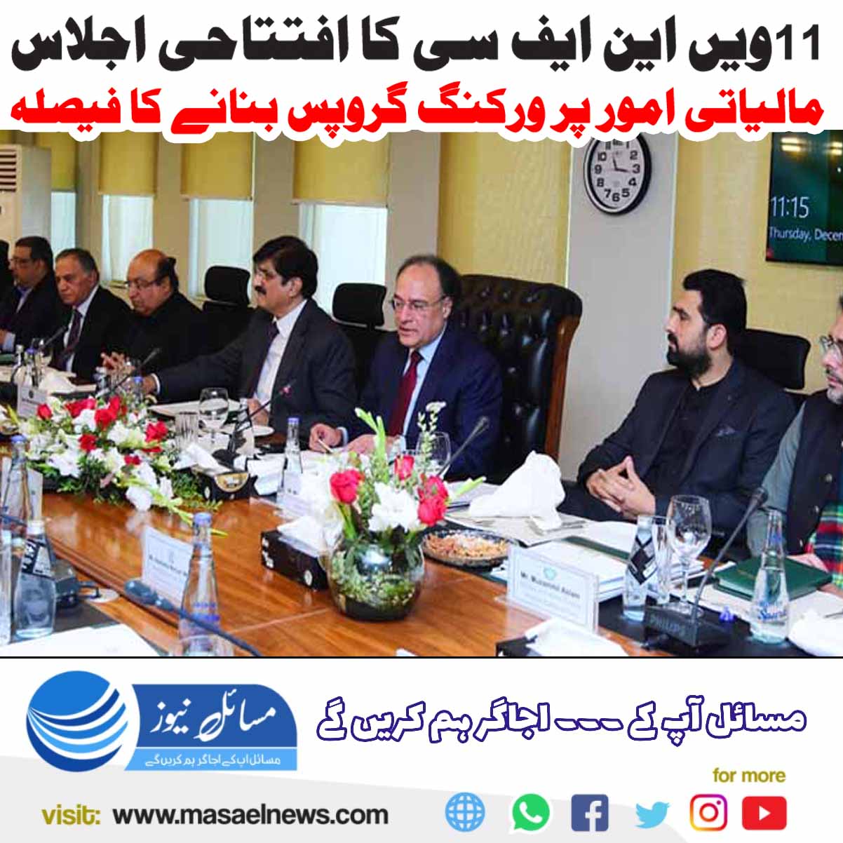 اسلام آباد(مسائل نیوز) 11 ویں قومی مالیاتی کمیشن کے افتتاحی اجلاس میں مالیاتی امور کو آگے بڑھانے کے لیے ورکنگ گروپ بنانے کا فیصلہ کیا گیا ہے۔