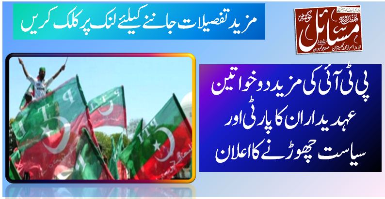 پی ٹی آئی کی مزید دو خواتین عہدیداران کا پارٹی اور سیاست چھوڑنے کا اعلان