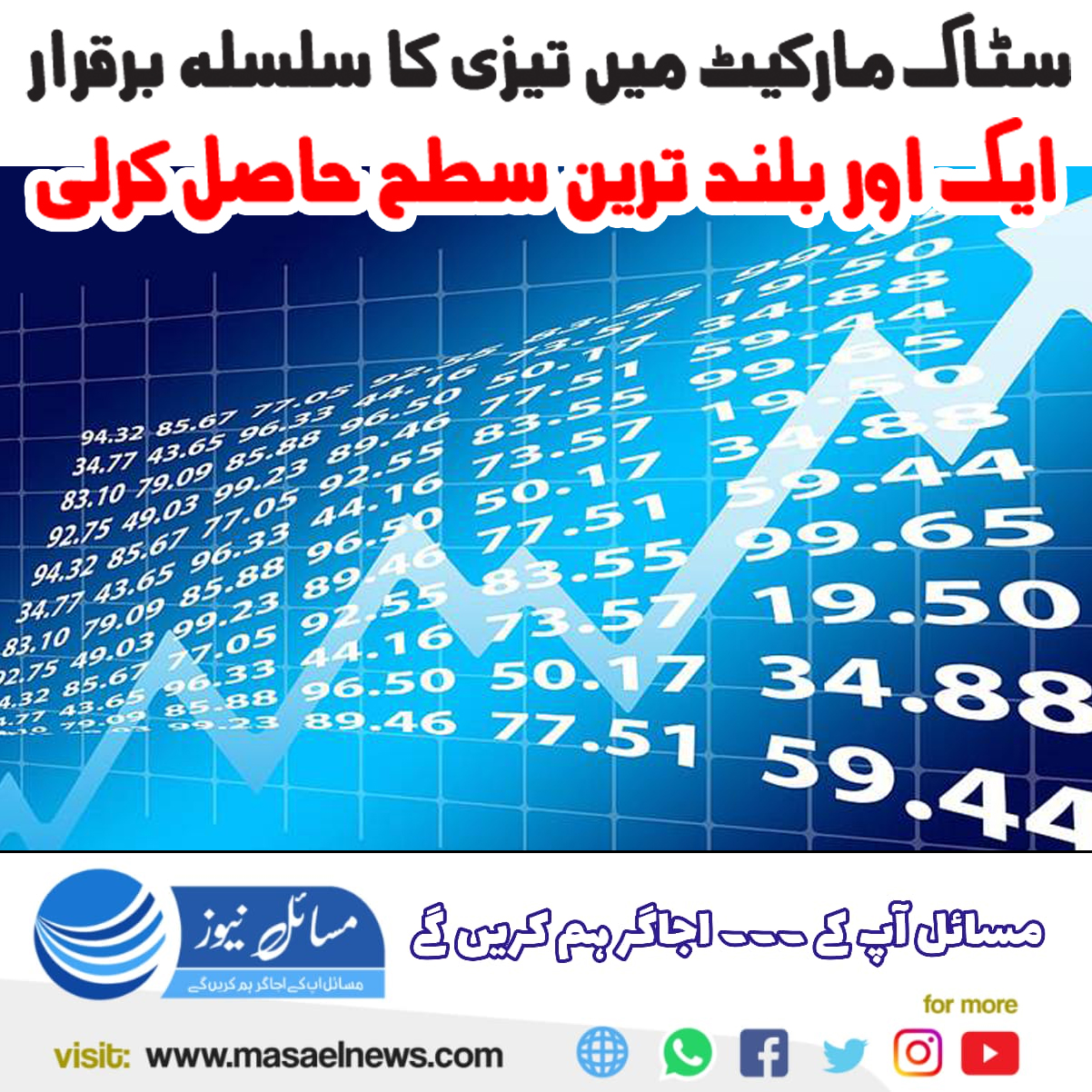 سٹاک مارکیٹ میں تیزی کا سلسلہ برقرار، ایک اور بلند ترین سطح حاصل کر لی