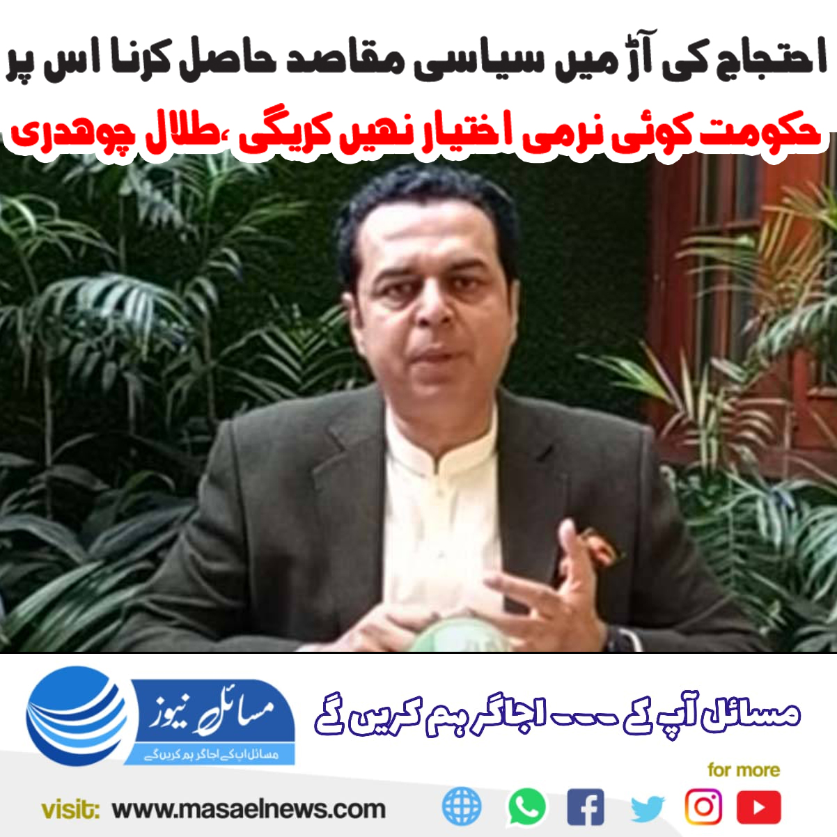 احتجاج کی آڑ میں سیاسی مقاصد حاصل کرنا اس پر حکومت کوئی نرمی اختیار نہیں کرے گی، طلال چودھری