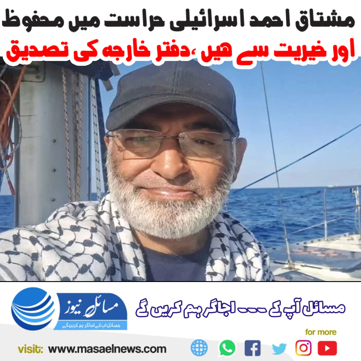 صمود فلوٹیلا میں سوار پاکستانی شہریوں سے متعلق ترجمان دفتر خارجہ نے اپنے بیان میں بتایا کہ ایک دوست یورپی ملک کے سفارتی ذرائع کے ذریعے ہم نے تصدیق کی ہے کہ سابق سینیٹر مشتاق احمد اسرائیلی قابض افواج کی تحویل میں محفوظ اور خیریت سے ہیں۔