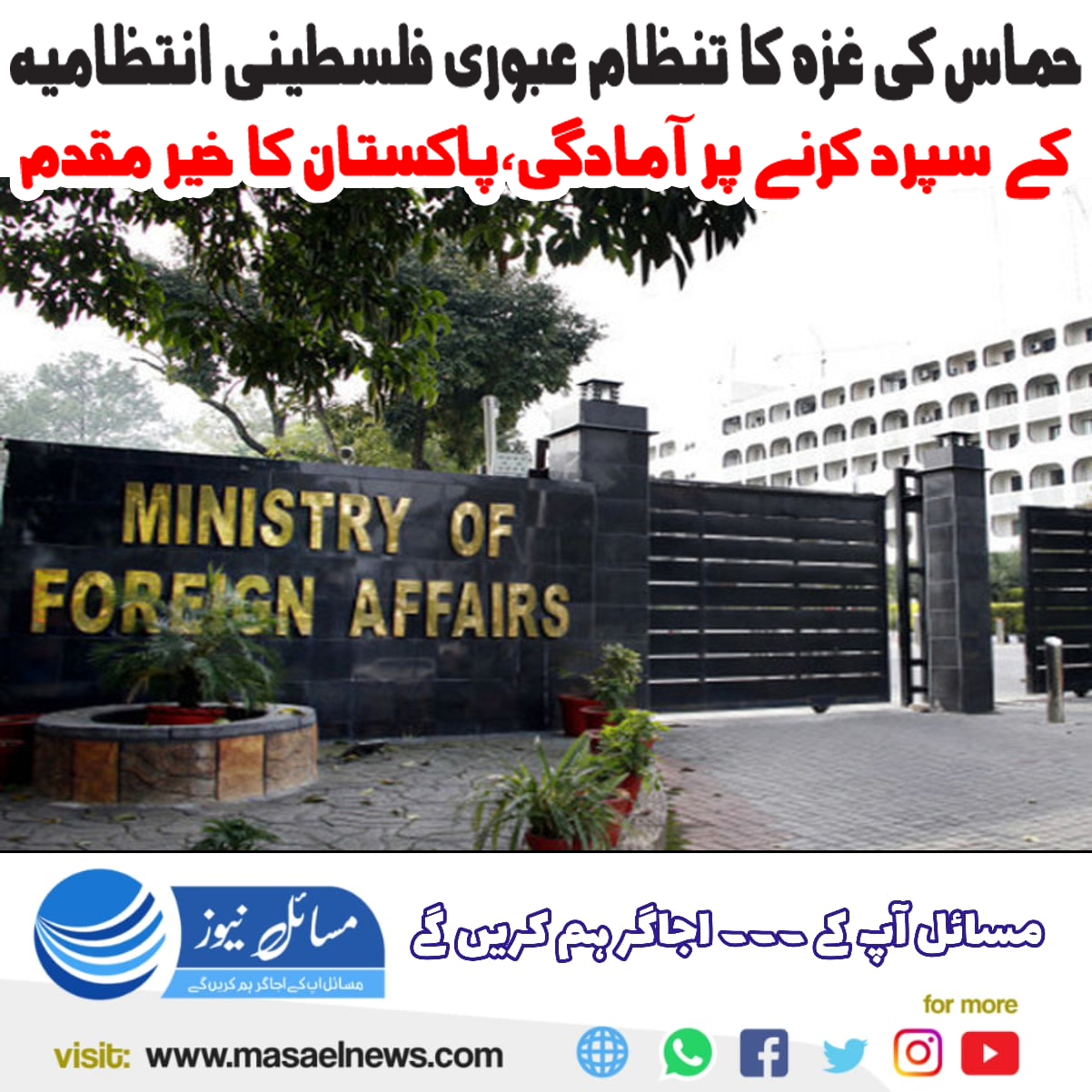 اسلام آباد(مسائل نیوز)پاکستان سمیت تمام وزرائے خارجہ نے حماس کی جانب سے غزہ کا انتظام ایک عبوری فلسطینی انتظامی کمیٹی کے سپرد کرنے کی آمادگی کے اعلان کا خیر مقدم کیا ہے۔