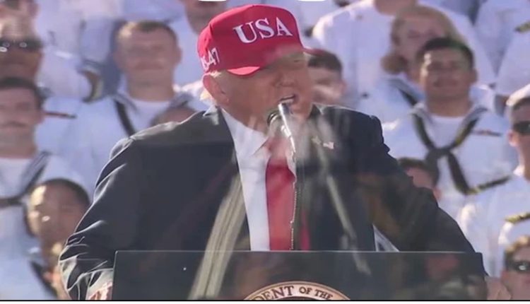اپنے خطاب کے دوران صدر ٹرمپ نے امریکی مسلح افواج کو خراجِ تحسین پیش کرتے ہوئے کہا کہ امریکی فوج دنیا کی سب سے طاقتور فوج ہے اور امریکی نیوی سیل سے زیادہ سخت جان کوئی نہیں۔