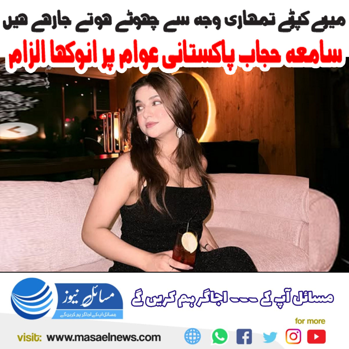میرے کپڑے تمہاری وجہ سے چھوٹے ہوتے جا رہے ہیں، سامعہ حجاب پاکستانی عوام پر انوکھا الزام