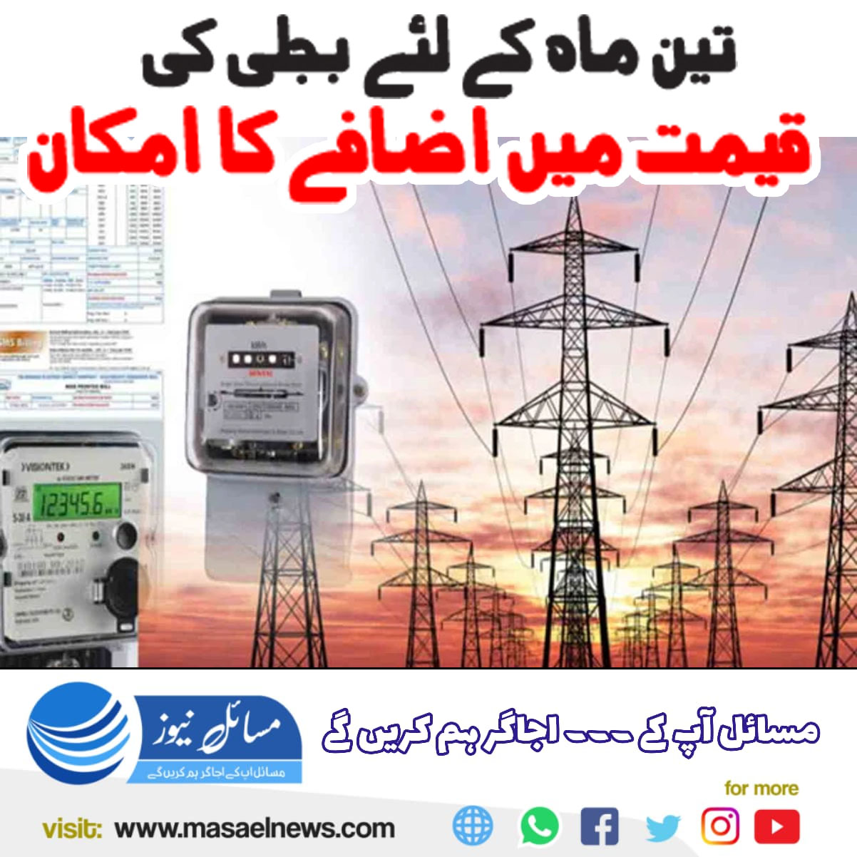 تین ماہ کے لیے بجلی کی قیمت میں اضافے کا امکان