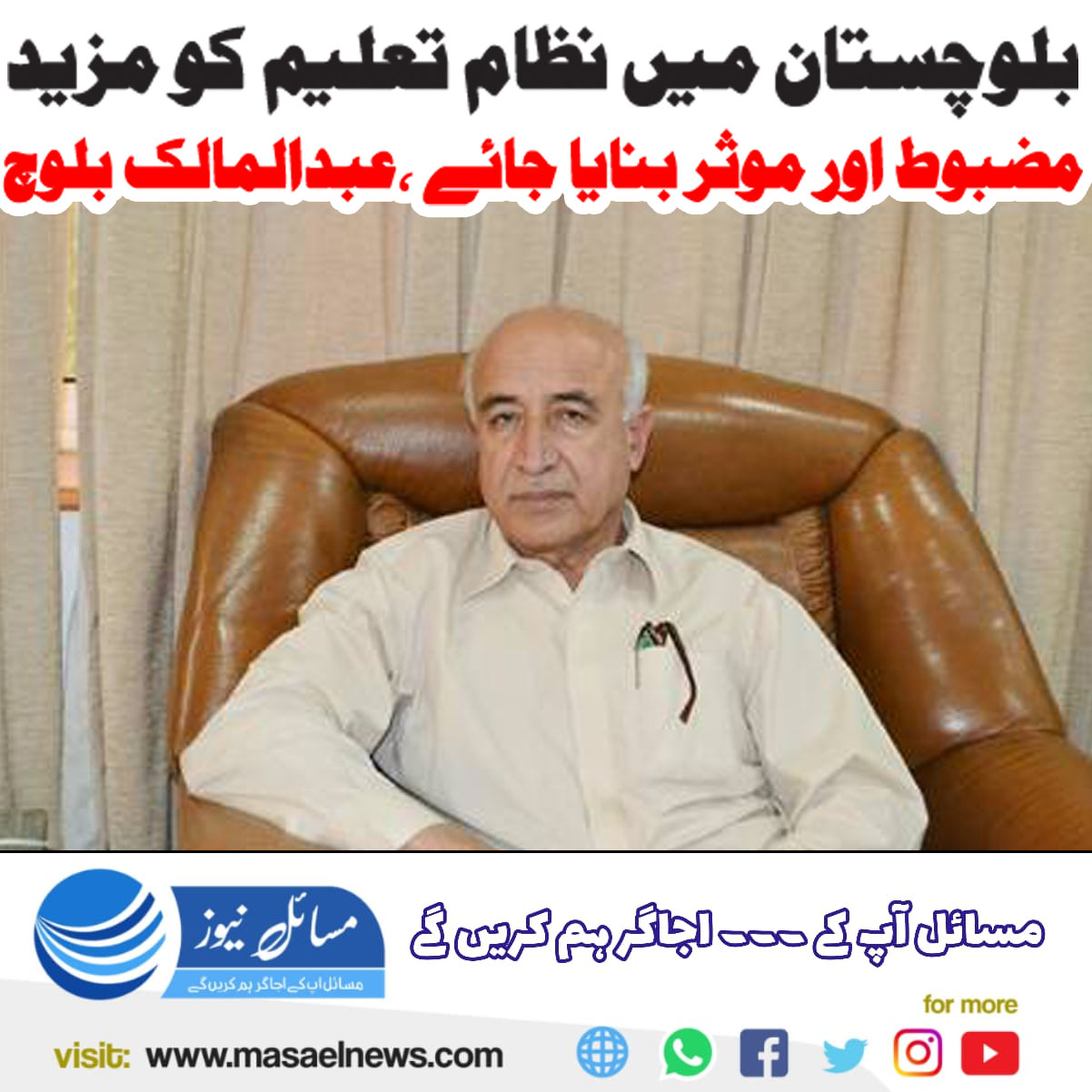 سابق وزیر اعلیٰ بلوچستان و سربراہ نیشنل پارٹی ڈاکٹر عبدالمالک بلوچ صاحب سے درخواست ہے کہ وہ شعبہ تعلیم بلوچستان کو بچانے کے لئے عملی طور پر کردار ادا کریں