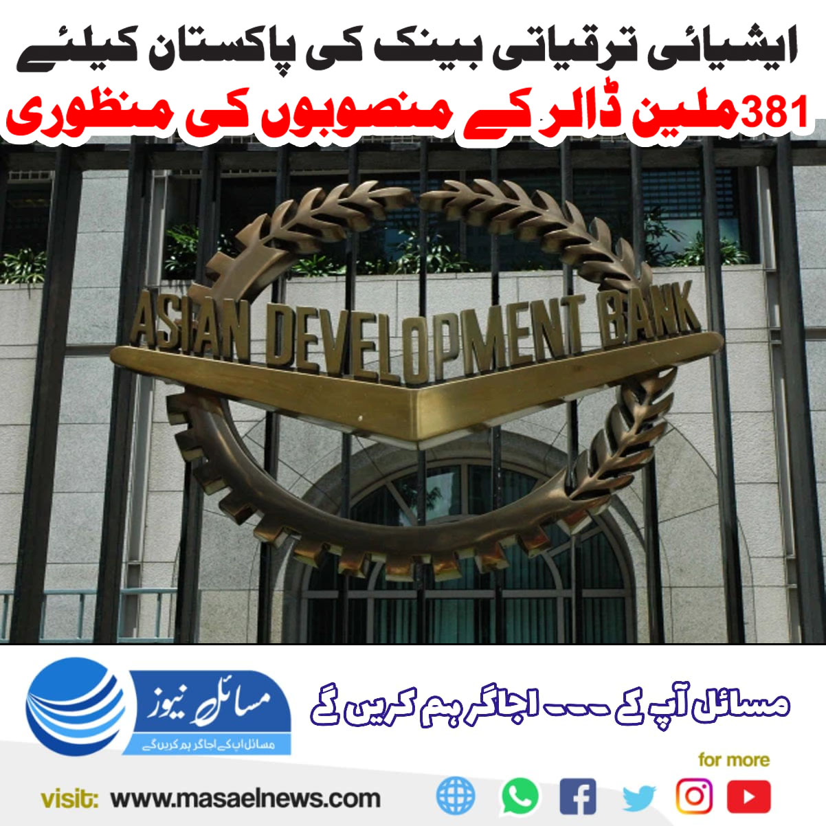 اسلام آباد(مسائل نیوز)ایشیائی ترقیاتی بینک (اےڈی بی) نےپاکستان کیلئے پنجاب میں زراعت، تعلیم اور صحت کے لیے 381 ملین ڈالر کی تین اہم منصوبوں کی منظوری دے دی ہے۔
