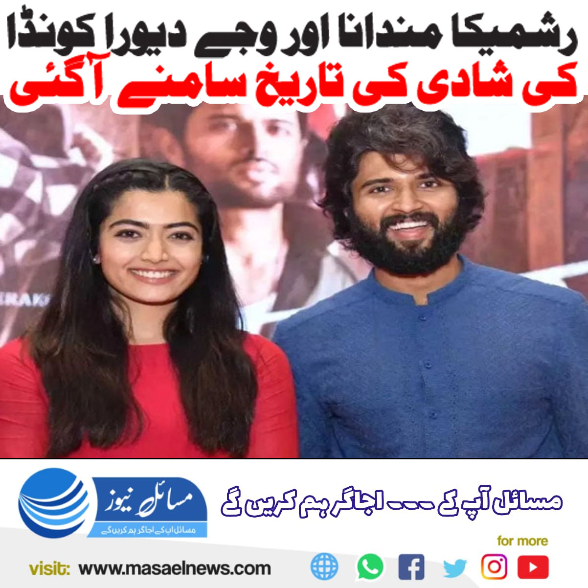 ممبئی(مسائل نیوز)پشپا اسٹار رشمیکا مندانا اور اداکار وجے دیوراکونڈا کی شادی کی ممکنہ تاریخ سامنے آگئی ہے۔