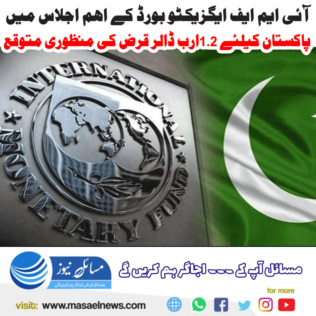 ذرائع کا کہنا ہے کہ آئی ایم ایف ایگزیکٹو بورڈ اجلاس میں پاکستان کے لیے 1.2 ارب ڈالر کی قسط کی منظوری دی جائے گی۔