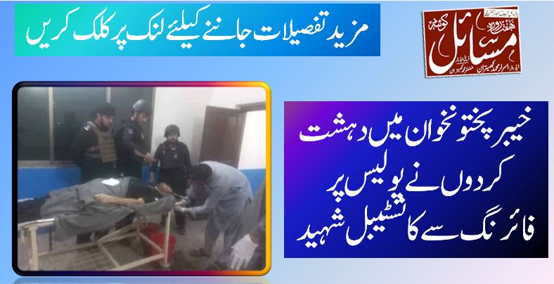 پشاور(ویب ڈیسک) خیبر پختونخوا کے ضلع خیبر میں پولیس چوکی پر فائرنگ سے پولیس کانسٹیبل شہید ہوگیا۔پولیس کے مطابق شہت گردو ںنے تھانہ باڑہ الحاج پولیس چوکی پر فائرنگ جس سے پولیس کانسٹیببل نسیم شہید ہوگیا