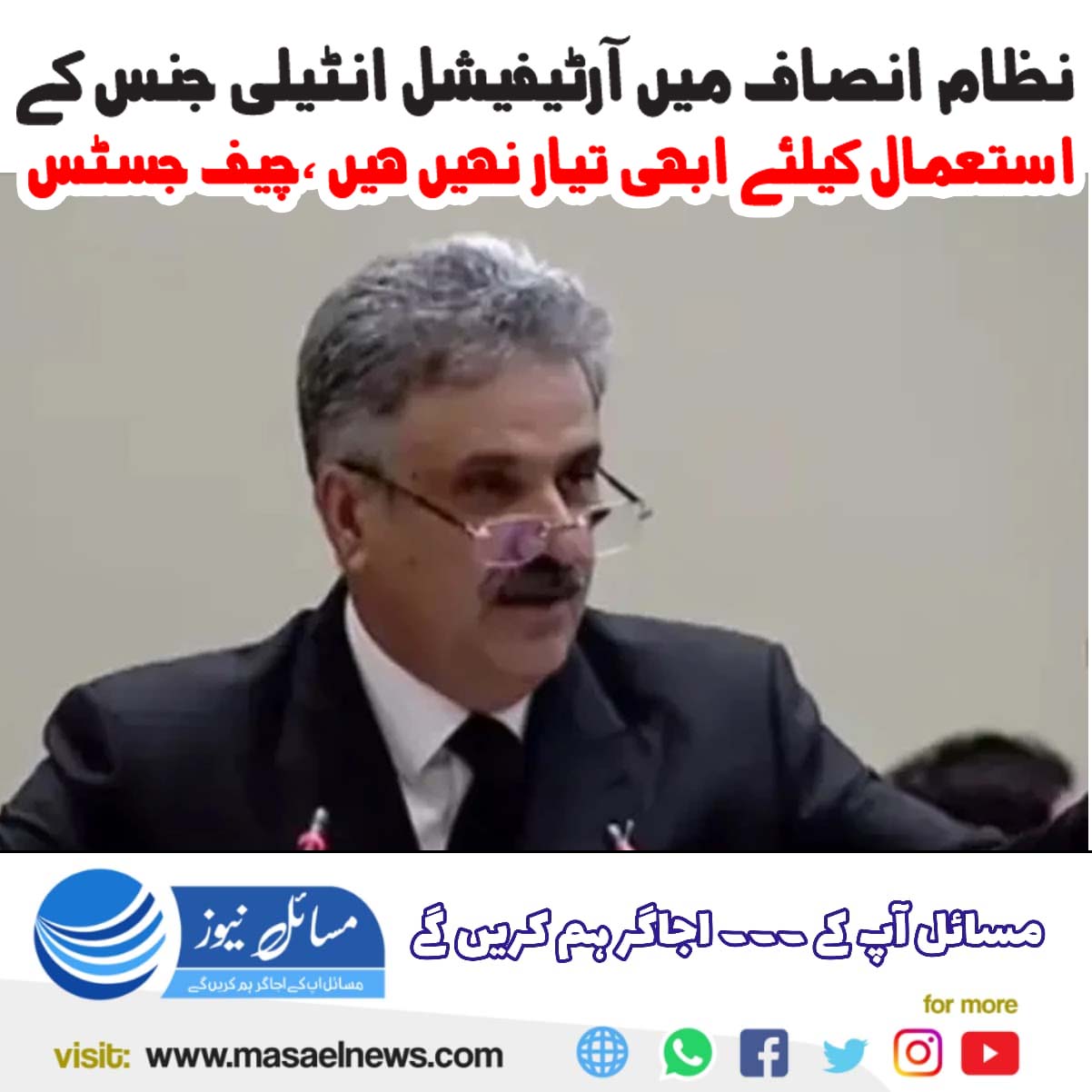اسلام آباد(مسائل نیوز)چیف جسٹس آف پاکستان یحییٰ آفریدی نے کہا ہے کہ نظام انصاف میں آرٹیفیشل انٹیلجنس کا استعمال ہونا چاہیے مگر ہم اس کے لیے ابھی فوری طور پر تیار نہیں ہیں۔