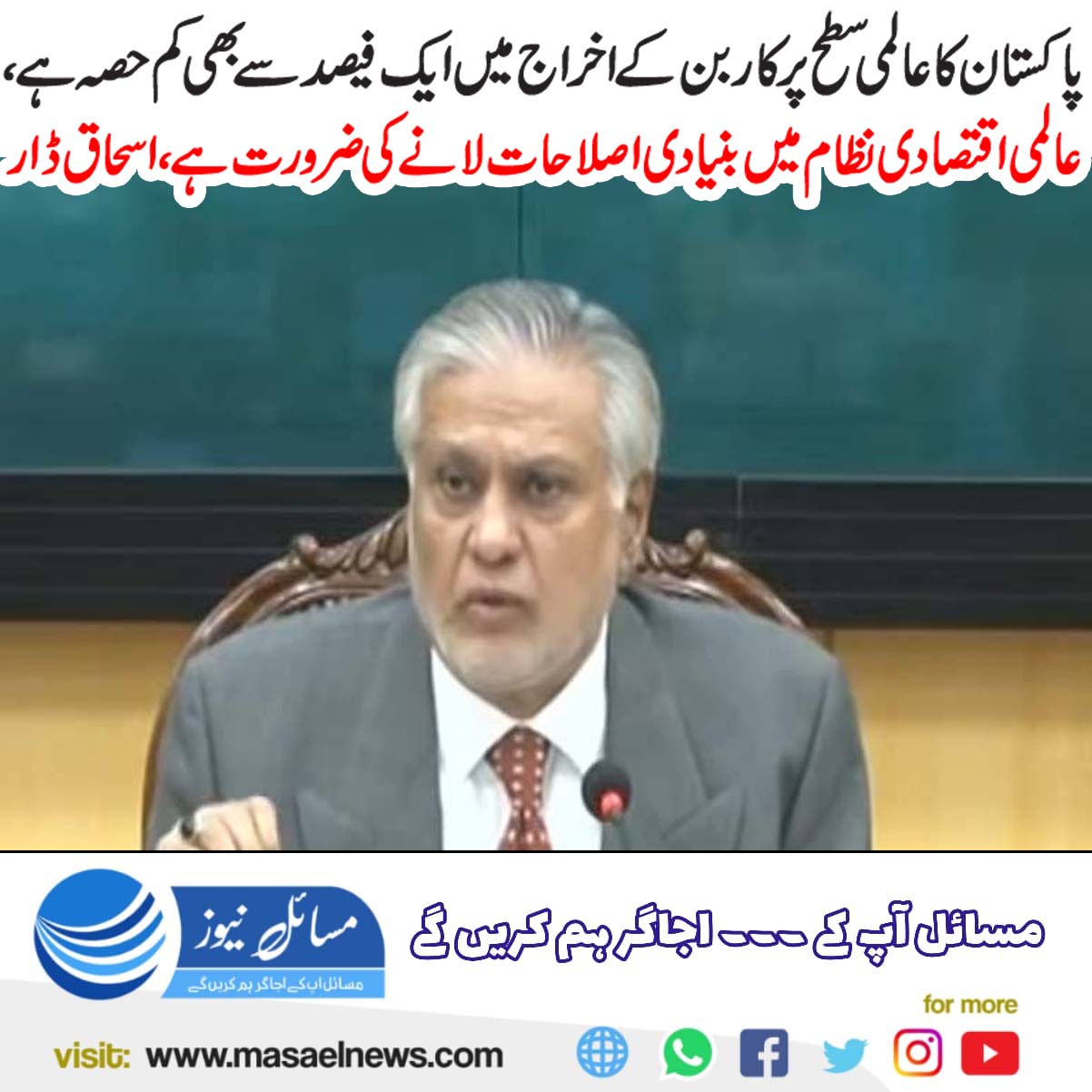 پاکستان کا عالمی سطح پر کاربن کے اخراج میں ایک فیصد سے بھی کم حصہ ہے،عالمی اقتصادی نظام میں بنیادی اصلاحات لانے کی ضرورت ہے،اسحاق ڈار