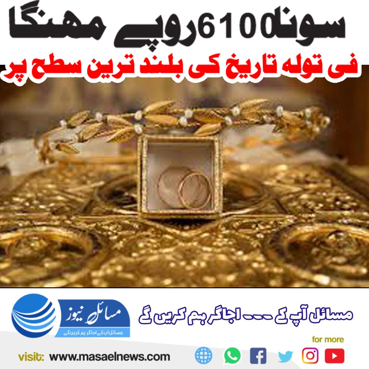 سونا 6100روپے مہنگا، فی تولہ قیمت تاریخ کی بلند ترین سطح پر پہنچ گئی