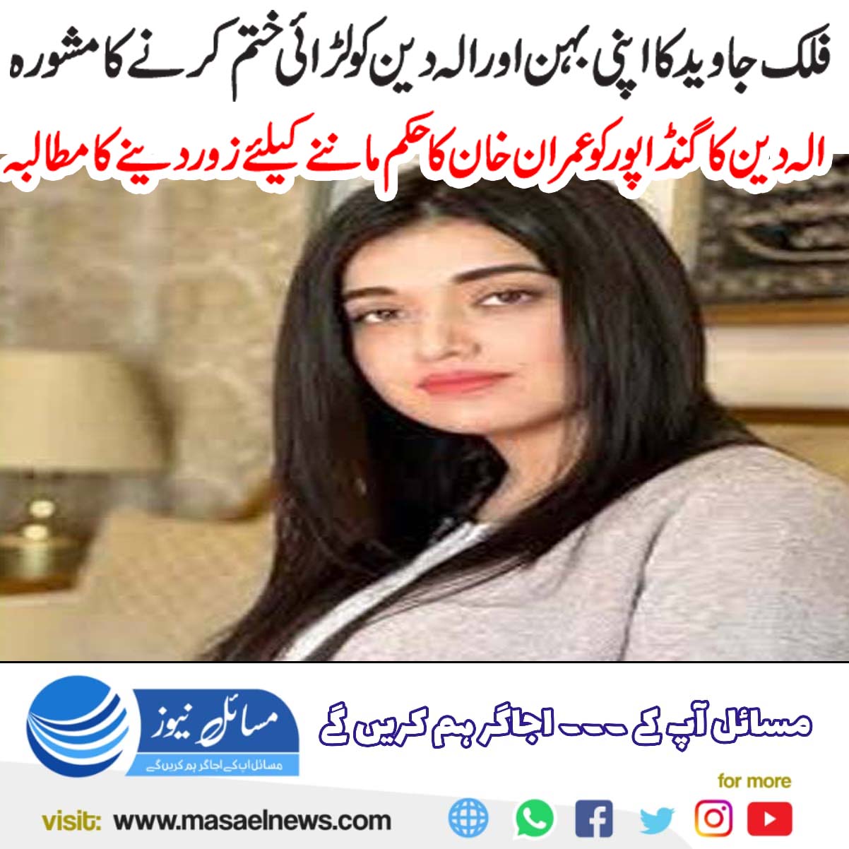 فلک جاوید کا اپنی بہن اور الہ دین کو لڑائی ختم کرنے کا مشورہ، الہ دین کا گنڈا پور کو عمران خان کا حکم ماننے کیلئے زور دینے کا مطالبہ