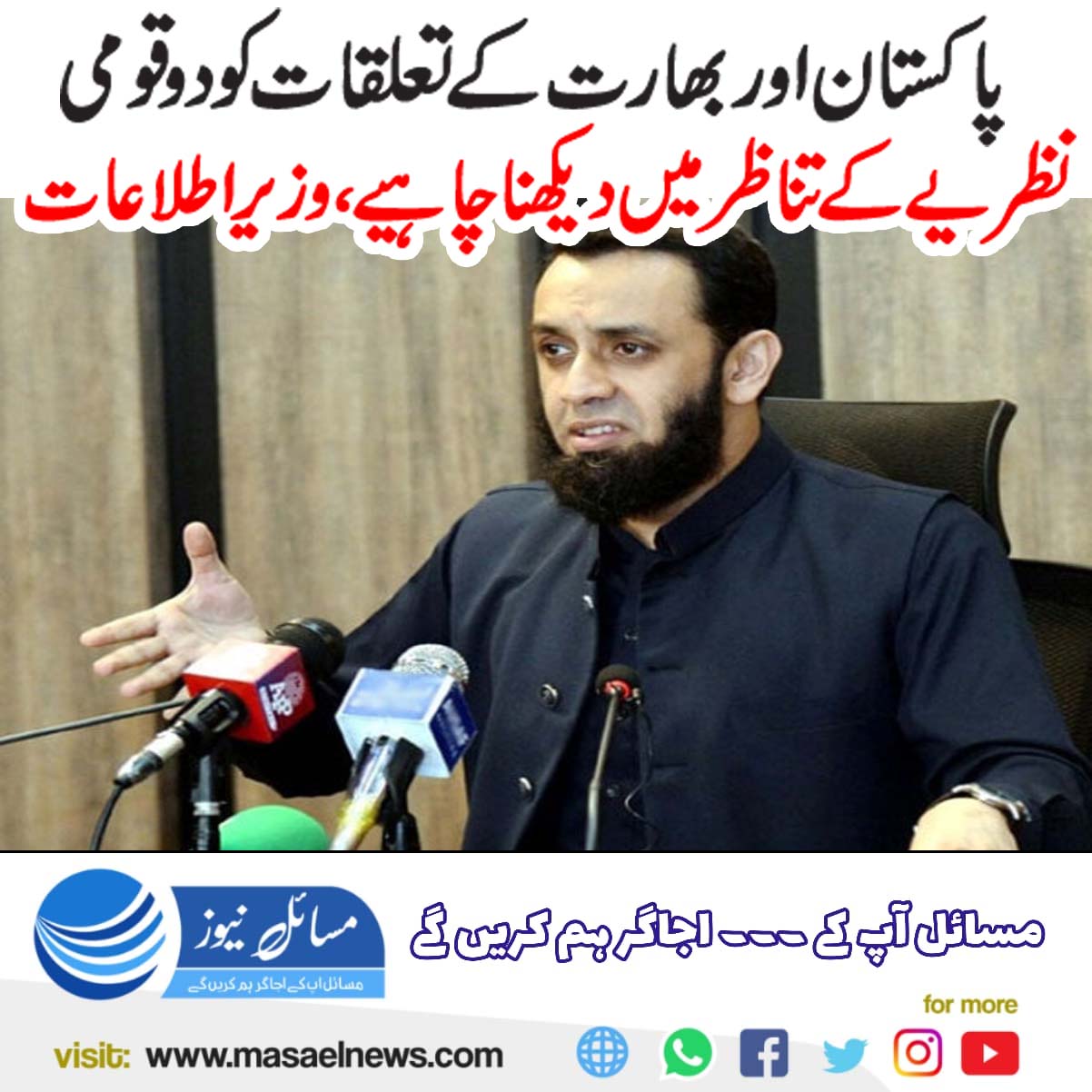 اسلام آباد(مسائل نیوز)وفاقی وزیر اطلاعات عطا تارڑ نے کہا ہے کہ پاکستان اور بھارت کے تعلقات کو دو قومی نظریے کے تناظر میں دیکھنا چاہیے۔