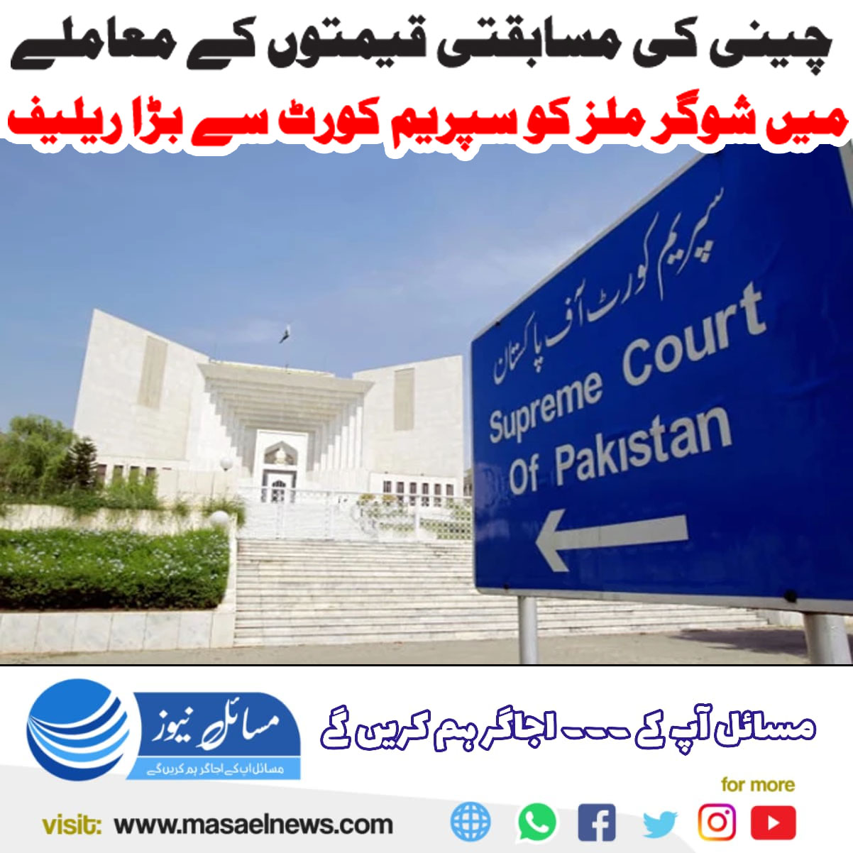 اسلام آباد(مسائل نیوز)چینی کی مسابقتی قیمتوں کے معاملے میں شوگر ملز کو سپریم کورٹ سے بڑا ریلیف مل گیا جب کہ سپریم کورٹ نے ٹریبونل کا چیئرپرسن کمپیٹیشن کمیشن آف پاکستان کو دوبارہ سماعت کا اختیار دینے کا فیصلہ کالعدم قرار دے دیا۔