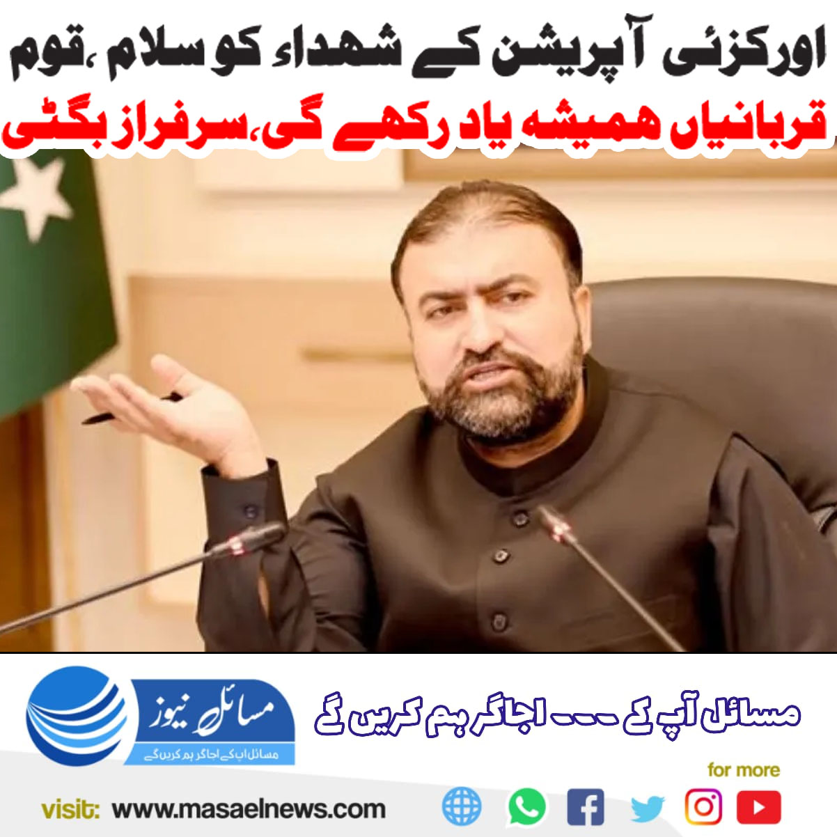 کوئٹہ(مسائل نیوز) وزیر اعلیٰ بلوچستان میر سرفراز بگٹی نے اورکزئی میں دہشت گردوں کے خلاف آپریشن کے دوران جامِ شہادت نوش کرنے والے پاک فوج کے افسران اور جوانوں کو شاندار الفاظ میں خراجِ عقیدت پیش کیا ہے۔