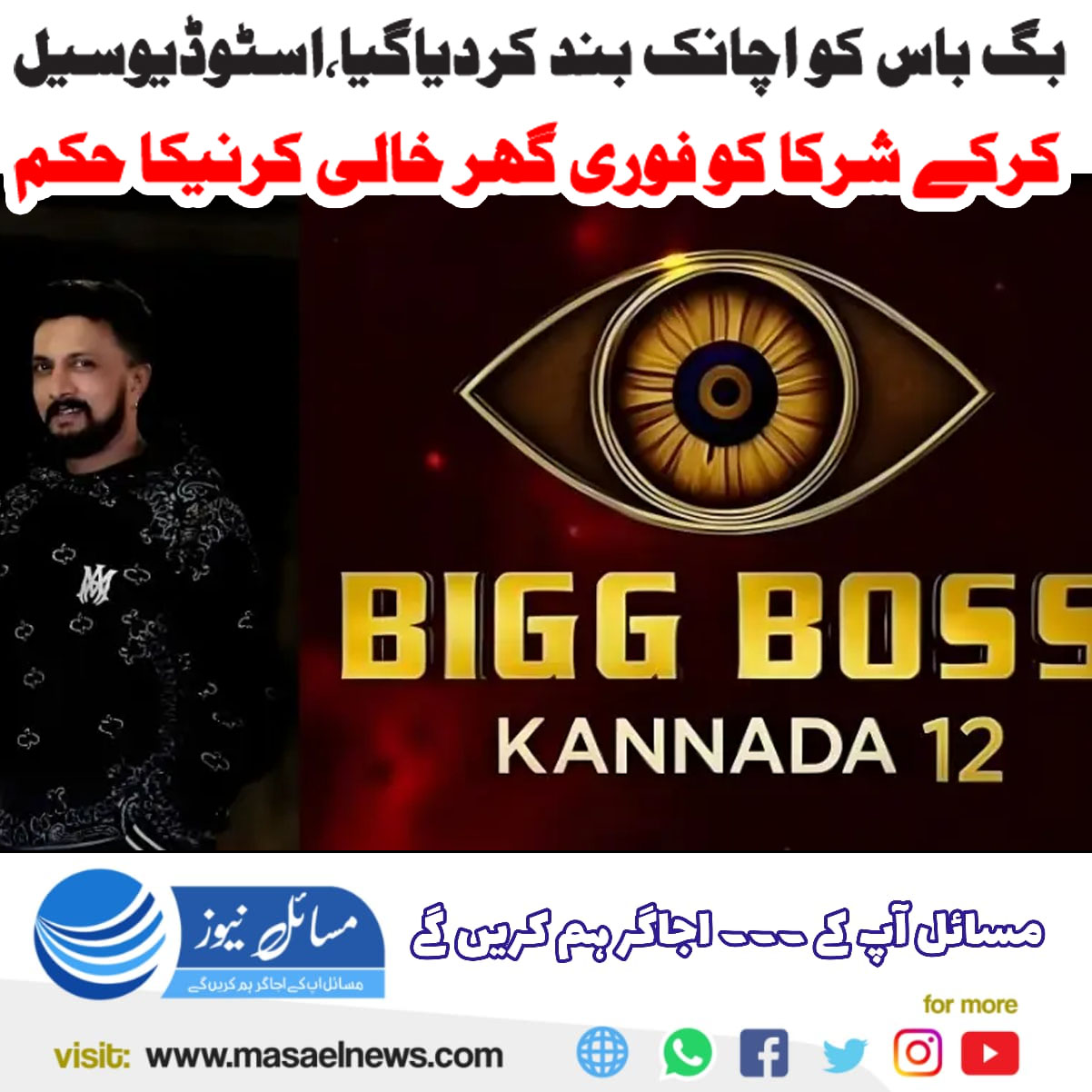 نئی دہلی (مسائل نیوز)بھارت کی ریاست کرناٹکا میں منگل کی رات شوبز کی دنیا میں غیر متوقع واقعہ پیش آیا جب مشہور رئیلٹی شو ’بگ باس کنڑا سیزن 12‘ کو اچانک روک دیا گیا۔ حکومت نے شو کی شوٹنگ کے لیے استعمال ہونے والے جولی ووڈ اسٹوڈیوز کو مکمل طور پر سیل کر دیا۔