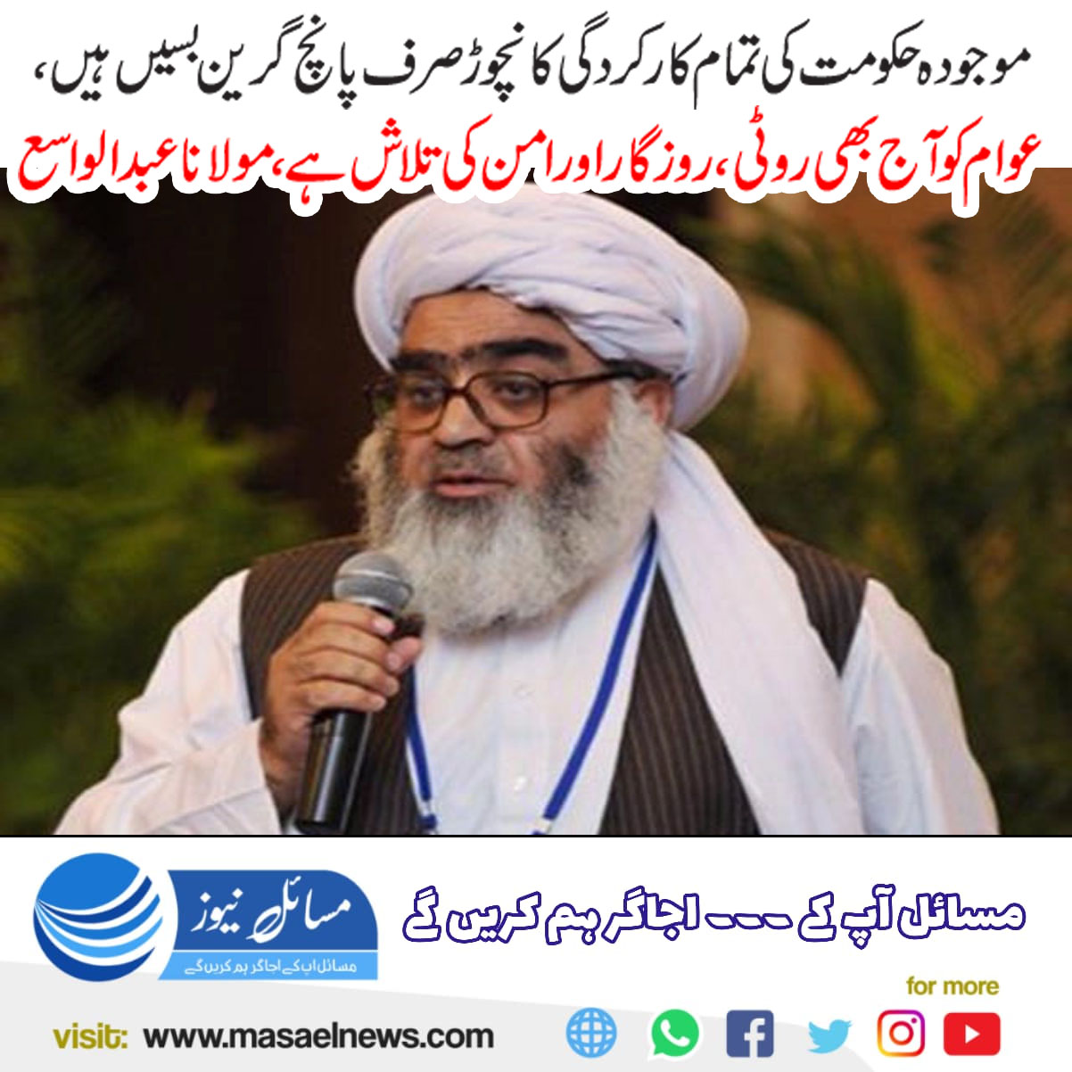 موجودہ حکومت کی تمام کارکردگی کا نچوڑ صرف پانچ گرین بسیں ہیں، عوام کو آج بھی روٹی، روزگار اور امن کی تلاش ہے،مولانا عبدالواسع